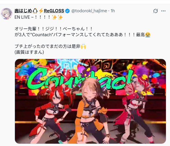 >>475627 >чисто трансляция видосика на киноэкран Блять как вы заебали со своими залетушными фантазиями. Шоу - это микс пререкордед+лайва. В перерывах между песнями они вполне нормально с залом общаются в реальном времени и волну пускают, потому что сами в это время закулисами в мокапе в специальной студии или гримёрке. И нет, через интернет это не работает, потому что лаг+инпут лаг+нестабильный интернет. И НЕКОТОРЫЕ песни действительно исполняются в лайве: во-первых это просто СЛЫШНО, а во-вторых бывают ситуации типа с Азки когда она расплакалась во время дуэта с Суисей, такое не подделаешь в записи. А вообще на, почитай и не позорься больше, Олька уже всю подноготную про бекстейдж выдала. https://x.com/kureijiollie/status/1959811445295816739