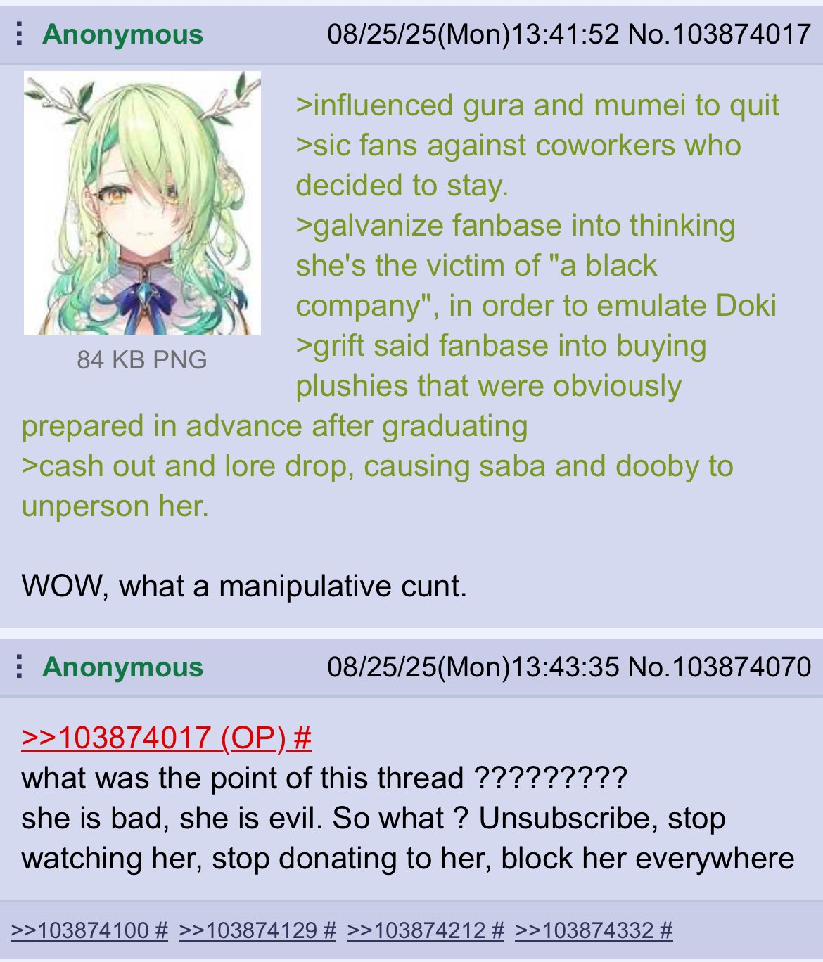 >>475126 Ебать неженка, ты похоже внутренныи тёрки "труъ" фанатов в дискорде и в твиттере не видел, тех самых шизов скупающих всю акрило-плюшевую залупу и имеющих 228 ошимарок в нике.
