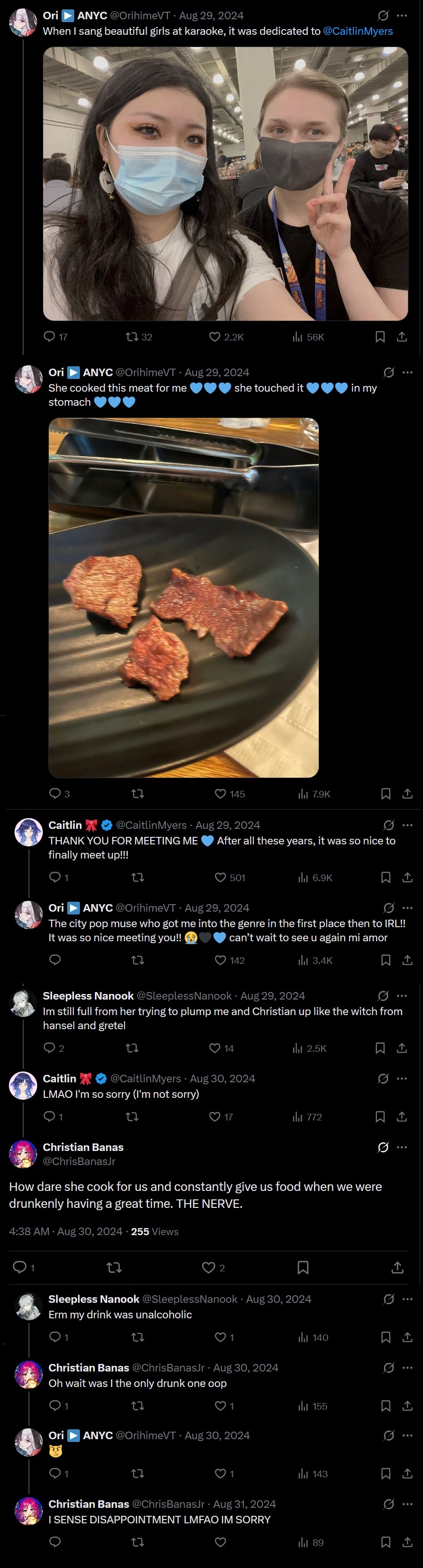>>Сходу рассказывает, как пошла тусить с косплеером Скорее всего опять с Орехиме, как и в прошлом году перед Breaking Dimensions. Что-бы ты, шиз, ещё больше порвался, могу сказать, что она тогда ходила с ней на двойное свидание с флештуберами и ВА. В этом году она хотя бы поступила разумнее и по всей видимости запретила своим друзьям об этом твитить.