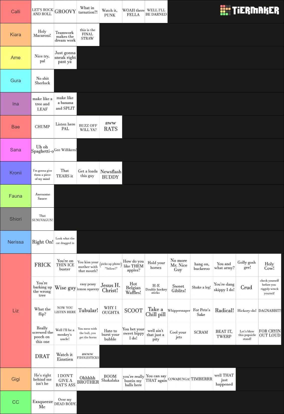 >демон звука Ленивая ноющая хуйня которая кладёт болт на стримы и придумывает отговорки чтобы не стримить, караоке стримов меньше чем у любой другой чубы, при том что джеилпёрды потужно форсят её как чуть ли не топ 5 сингеров вообще всего холо. >шиори Без комментариев. >cобаки Изначально мертворожденное говно т.к. они всегда хотели попасть в JP и работали на японскую аудиторию (SYA,GGN), которые зачем-то подали заявку в EN >камень Безыдейная инфантилка у которой из своего "контента" это скормленные ей педофилами из чата раковые мемчики и потужный гиммик геймерши, из-за того же чатика заботливо кормлящего её с ложечки дрочильным говном типа соулслайков и быдлофилда с колдой, очень интересно.