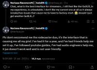 >>476887 Нет, но это вызвало щитшторм среди единорогов, которые начали обвинять Нериссу в том, что она продвигает Старсов и будет следующая с ними колабиться, особенно на форчане, поэтому и пришлось вмешаться и успокаивать. А вообще я нахожу кринжем, когда кто-то твитит полученные лайки от талантов.