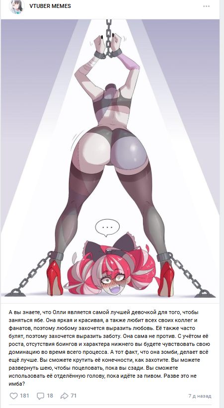 Вот ничего нельзя треду доверить! Начало >>480112 драмы принесли, а продолжение потерялось в производственном аду. Оказывается-то, там грязи на всё ниджи ен. аж на четыре гугл дока, но сумеречный гений их пожог Парнем ебанаши, которого отбила Рейму, был никто иной как Айк. Но только там совсем уж сложно опишу этот латинский сериал одной рукой, потому что Рейму приходила в ванную к Воксу для проёба бля, как вспомню эти усики-пропуск в трусики, начинаю сомневаться во всей этой истории, но миллионы мухинсектоидов китайских фуджоши ошибаться не могут, а потом читала переписку с его фанаткой, которая названивала по восемь часов на дню присылая сисик и ей это как-то не зашло. Тогда она попробовала пробраться в трусики к Айку, но тот был непоколебим верим. После неудавшейся попытки заделать мясную дыру вызвать ревность у Вокса Айка выпизднули изо всех чатов, как до этого загостили и Нину, хотя в лицо ей которое и представлять не надо, видели на твичконе говорили, что она просто шизанулась. Ещё раз хочется подивиться мудрости 4д гроссмейстеров, нарекрутивших теперь уже бывших фанатов хололайва, которые про ниджей ничего знать не знали и всех семпаев в рот ебали.