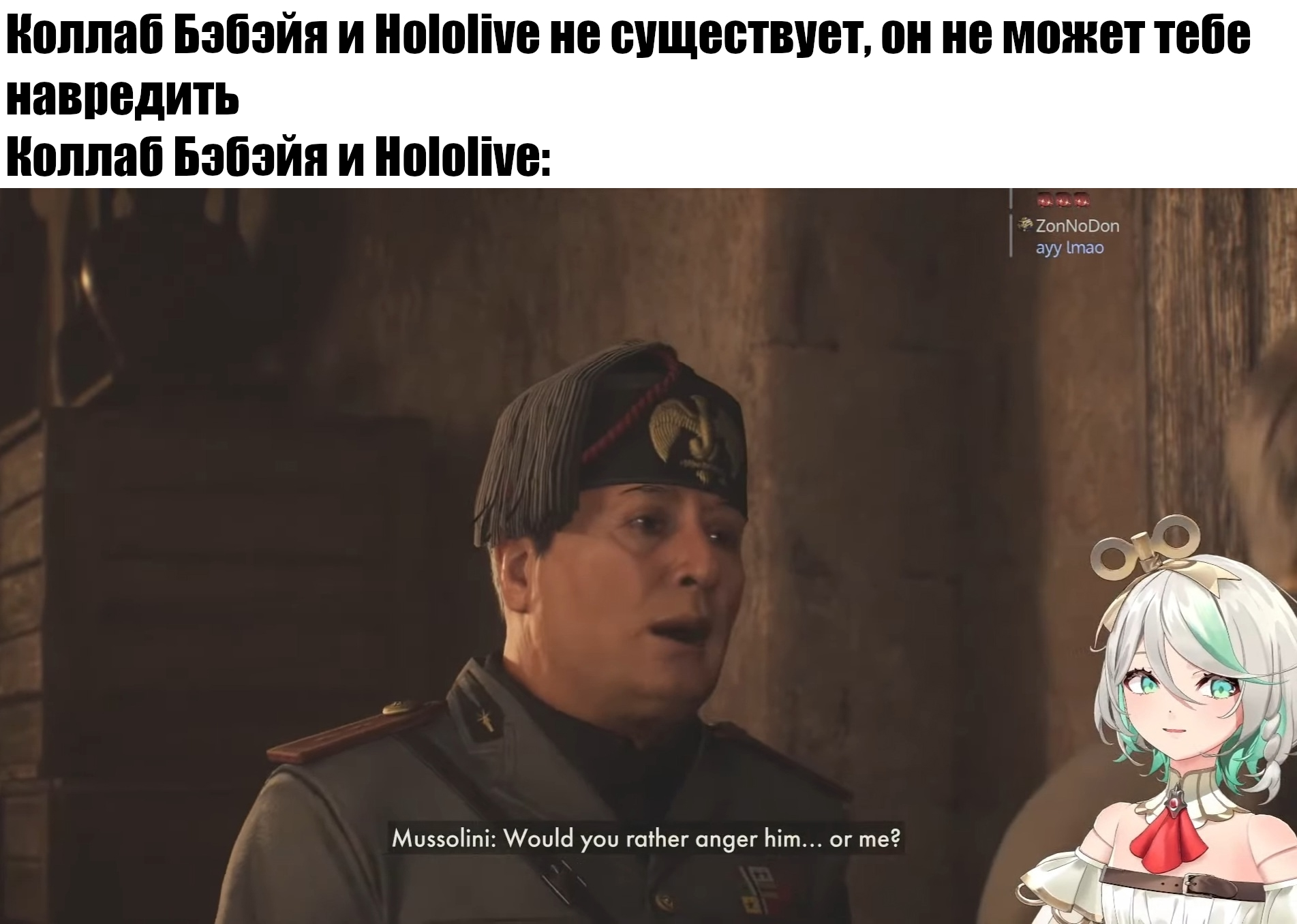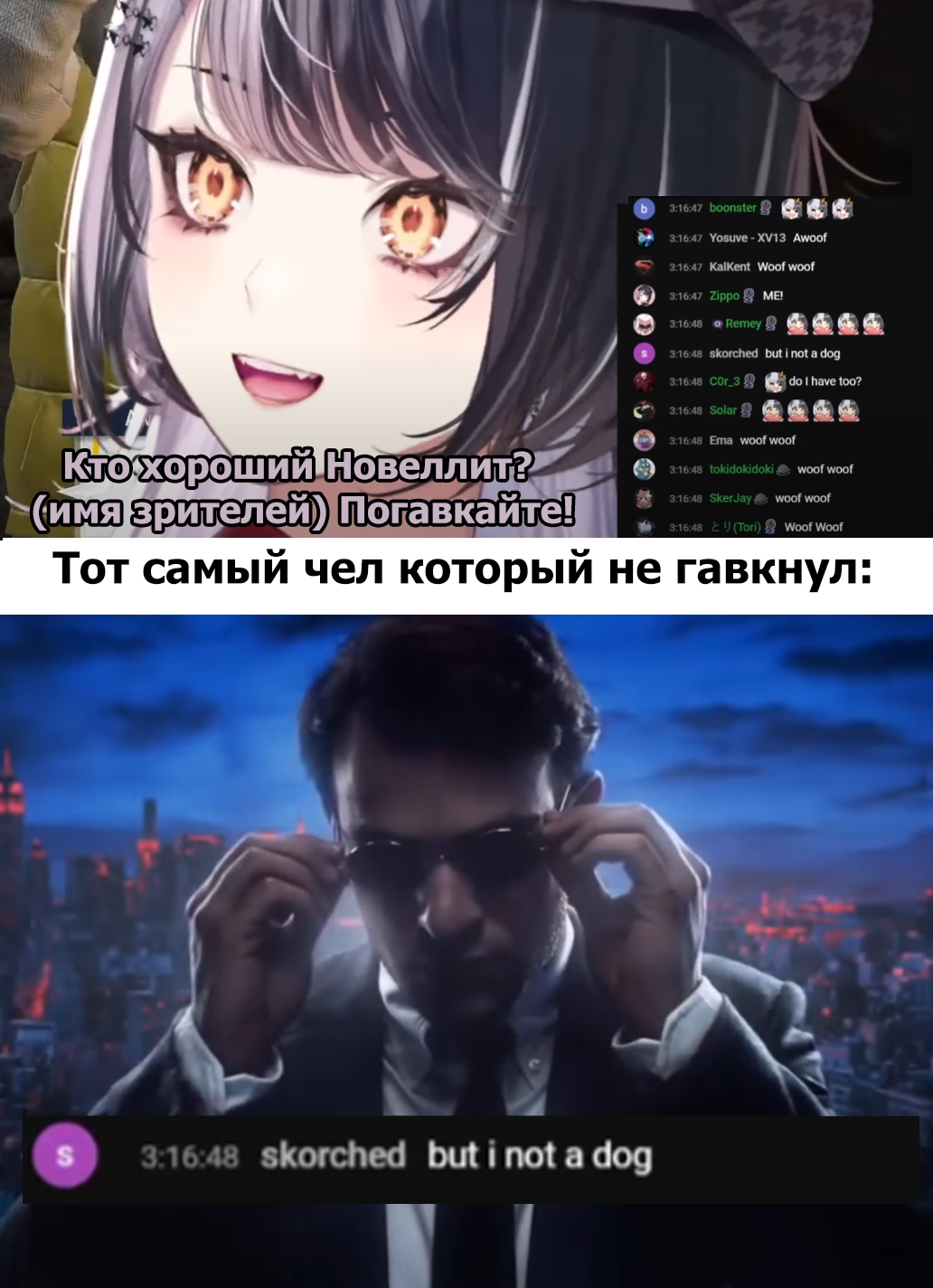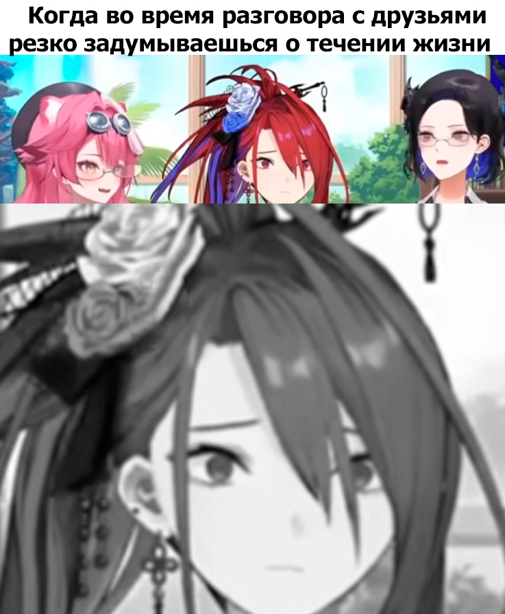 Из смешного на видео >меня харасили в комментариях фразами "Аня, вернись к своим дочуркам Нейро и Эвил" напомнило этот мэм, где две чубы пересекаются на улице и перекидываются невинными фразами, а после этого одна из них вентит на бордах, лимао.