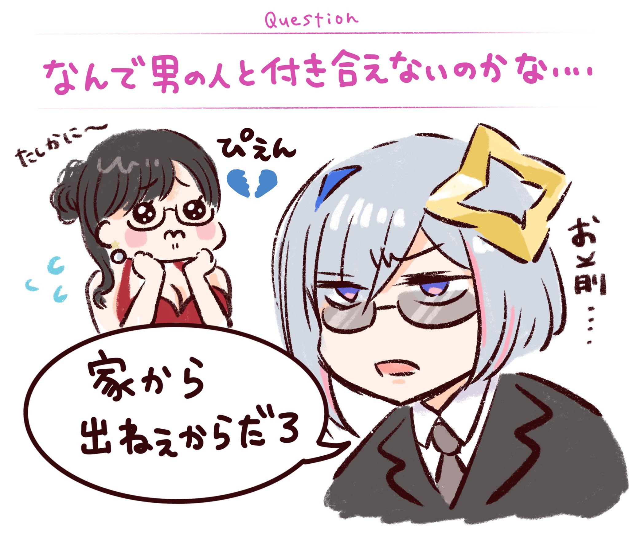 >>486416 Верхний текст (розовый): 「なんで男の人と付き合えないのかな……」 «Почему я не могу встречаться с парнем...» Текст слева (возле грустной девушки): 「ひえん」 (звук всхлипывания или смущения, типа "хи-хи" или "у-у") И маленькие слёзки/пот. Текст в бабле (от второй девушки): 「家から出ねえからだろ」 «Потому что из дома не выходишь, вот и всё» (буквально: "Потому что не выходишь из дома, да?" — в разговорном стиле, грубовато и прямо). Суть мема: одна девушка грустит и жалуется, почему у неё нет парня, а вторая цинично отвечает правду — сидишь дома как хикикомори, вот и нет шансов познакомиться. Классический троллинг в аниме-стиле 😏 Если нужно больше контекста или перевод нюансов — спрашивай! беспомощный хуесос