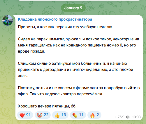 Кстати о лысом. Человек, который буквально и занимается тем, что ходулит, заболел сопликами и "всем таким". Японский шкаф, итоги. Почему никто в его подсос чат не скинул расписание гаку сру стримов?