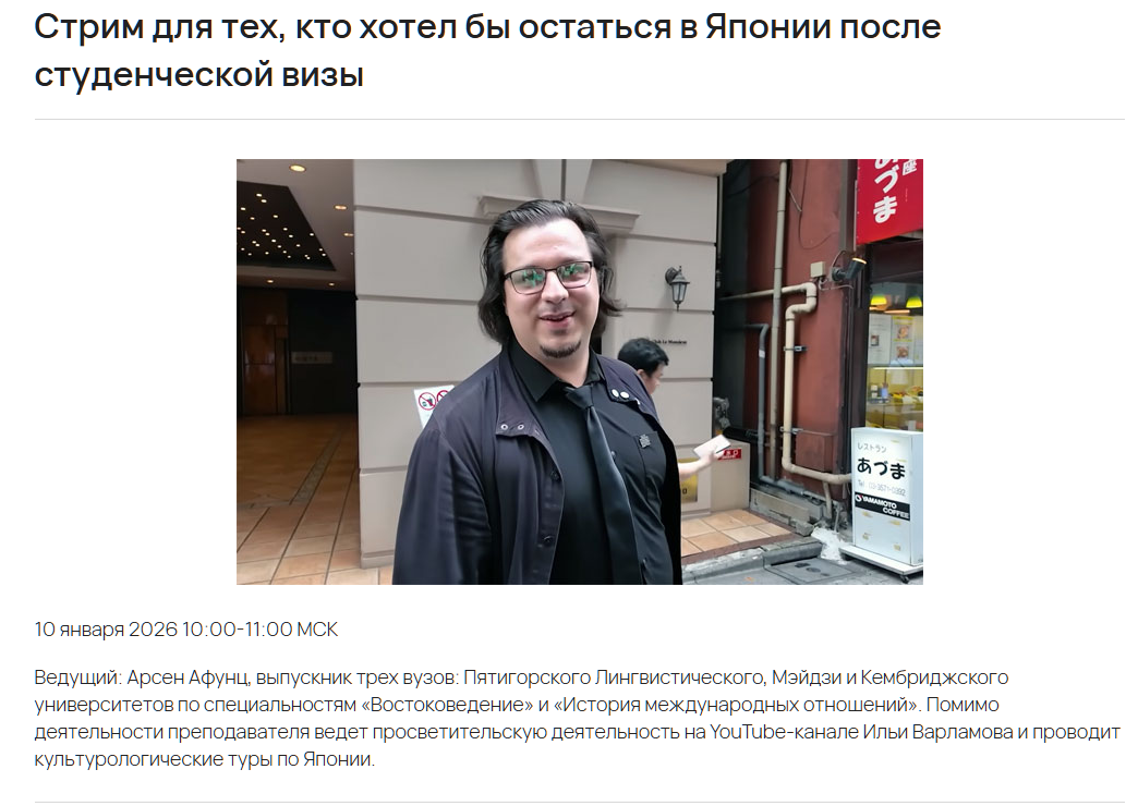 >>489589 На зумерков похуй, а вот что с Арсеном стрим улетел в небытие - жалко, там было много полезной инфы для вкатунов в языковухи, непосредственно от работника на гаку, а не рандомного селюка-ходуна который за внутреннюю кухню школ, подобных организаций и визовых режимов не знает, ровно как и языка и что представляют из себя японцы.