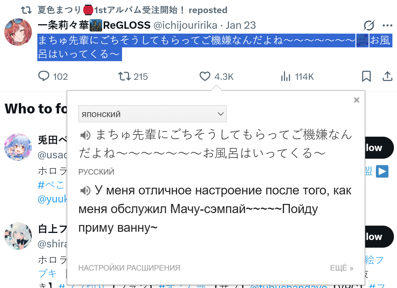 >>489511 Чел, полно браузеров которые умеют в синхронный перевод звуком. Либо пользуешься ими, либо сосёшь хуй дальше и стонешь про блокировки. Называть не буду, а то опять шизодаун сагрится и будет рассказывать что все мои пароли вот-вот украдёт плохой дядя осталось только подождать.