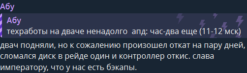>>490231 >у нас есть бэкапы У меня случились флешбэки с десятых, когда МОКЕДОНСКИЙ после подобного отъёба заверил, что бэкапы, базарю, восстановим, а потом годами кормил завтракамим и в итоге забил хуй.