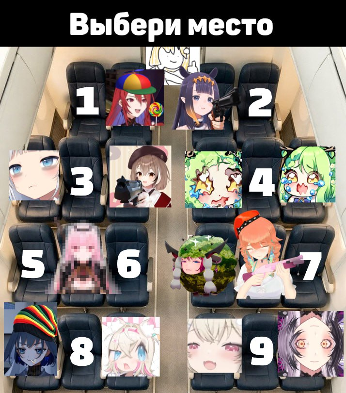 >>489922 Марин лезет к Пекоре На ее место и на 3-4-5 забиваются мужья Нене Ироха лезет на 8 Аяме не пришла на рейс на 7, поближе к Субару, чтоб не страшно. Койори ебут в проходе. Остается только 2, Лами набухается но можно с Азки потрещать и попросить спеть un owen was her.