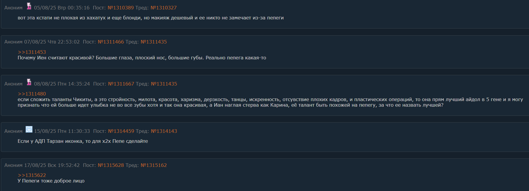 опять строит из себя моралиста говоря что талантливейшая айдолка популярна из-за жопы, коверкает имена и затирает лица на фотках, по кд вспоминает спонсоров как какой-то чмошный педик и т.д, и т.п. это вообще не смешно