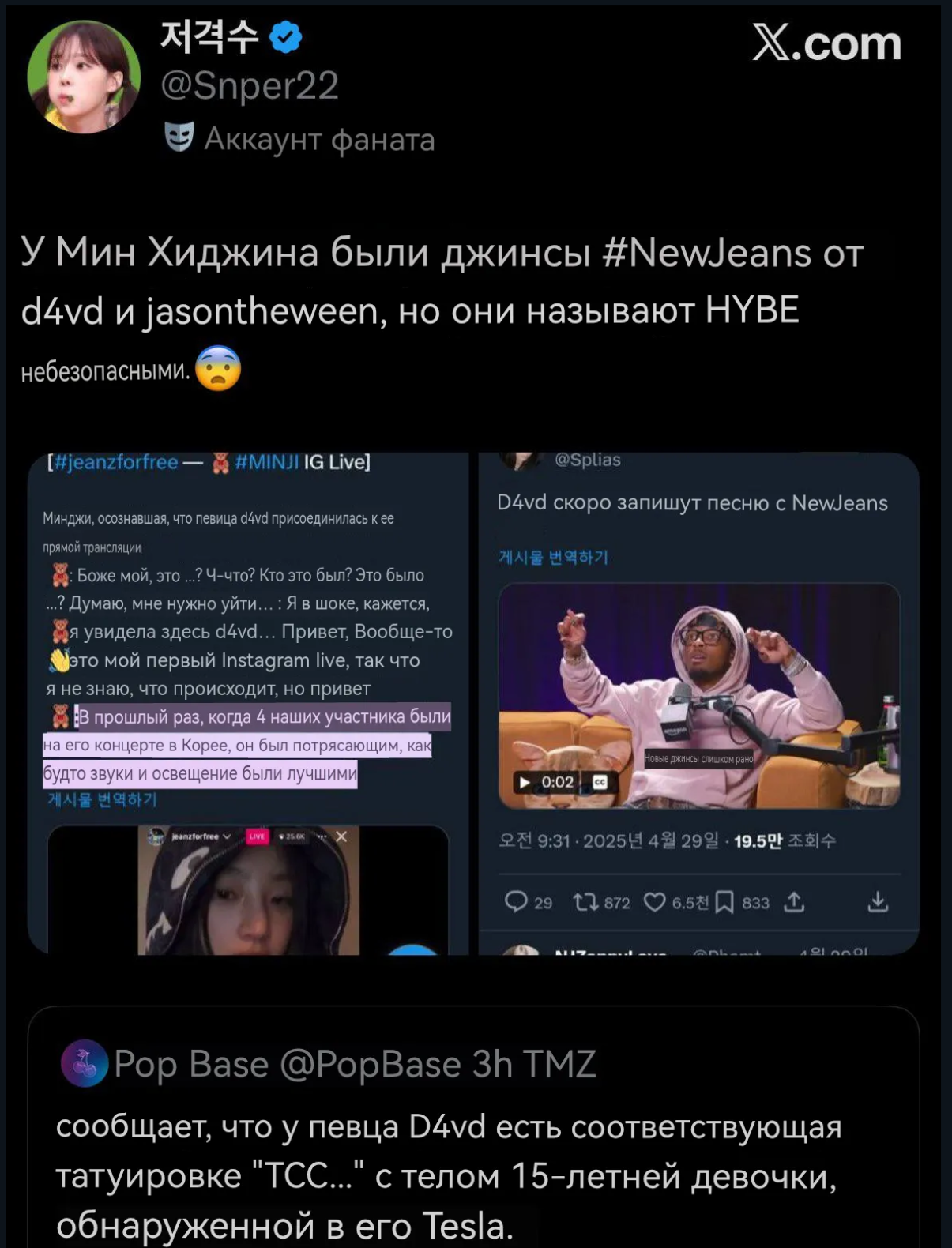 NewJeans Minji затащила остальных мемберок на концерт репера D4vd. О чем она с гордостью рассказывала банисам. Но 2 дня назад у него в машине нашли труп 15летнейдевушки с такой же татуировкой как и у него.