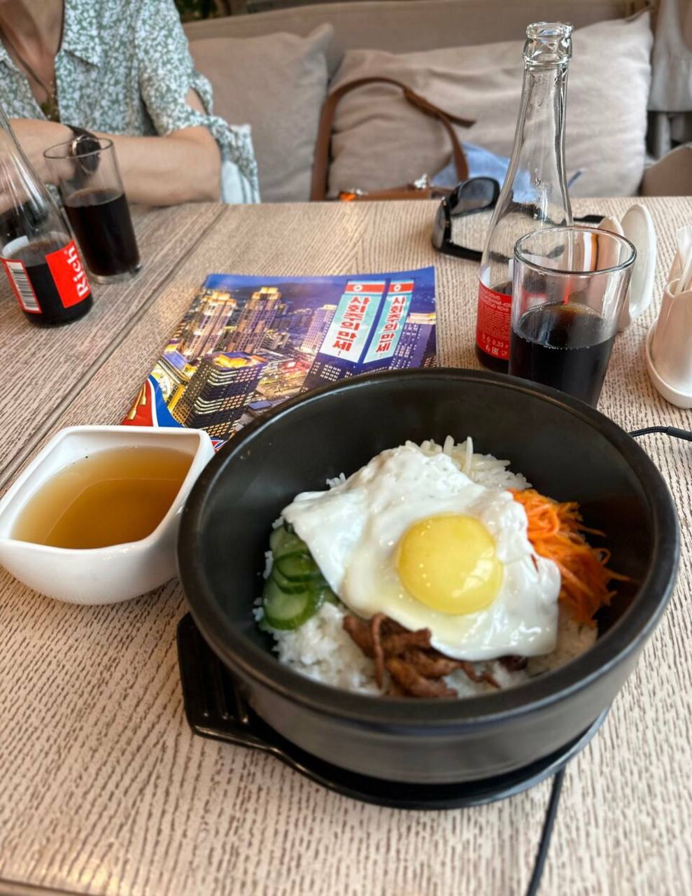В Москве открылся северокорейский ресторан «Пхеньян», попасть в который можно только по паспорту. Вход запрещён и тем, кто когда-либо посещал Южную Корею. Внутри царит дух чучхе: на экранах транслируют передачи из КНДР, на столах лежат журналы из Пхеньяна, а плейлист сочетает северокорейскую поп-музыку с записью концерта Шамана для Ким Чен Ына. Персонал полностью набран из КНДР. Официантки — молодые женщины в униформе и на каблуках, похожие на стюардесс, с трудом понимают русский язык