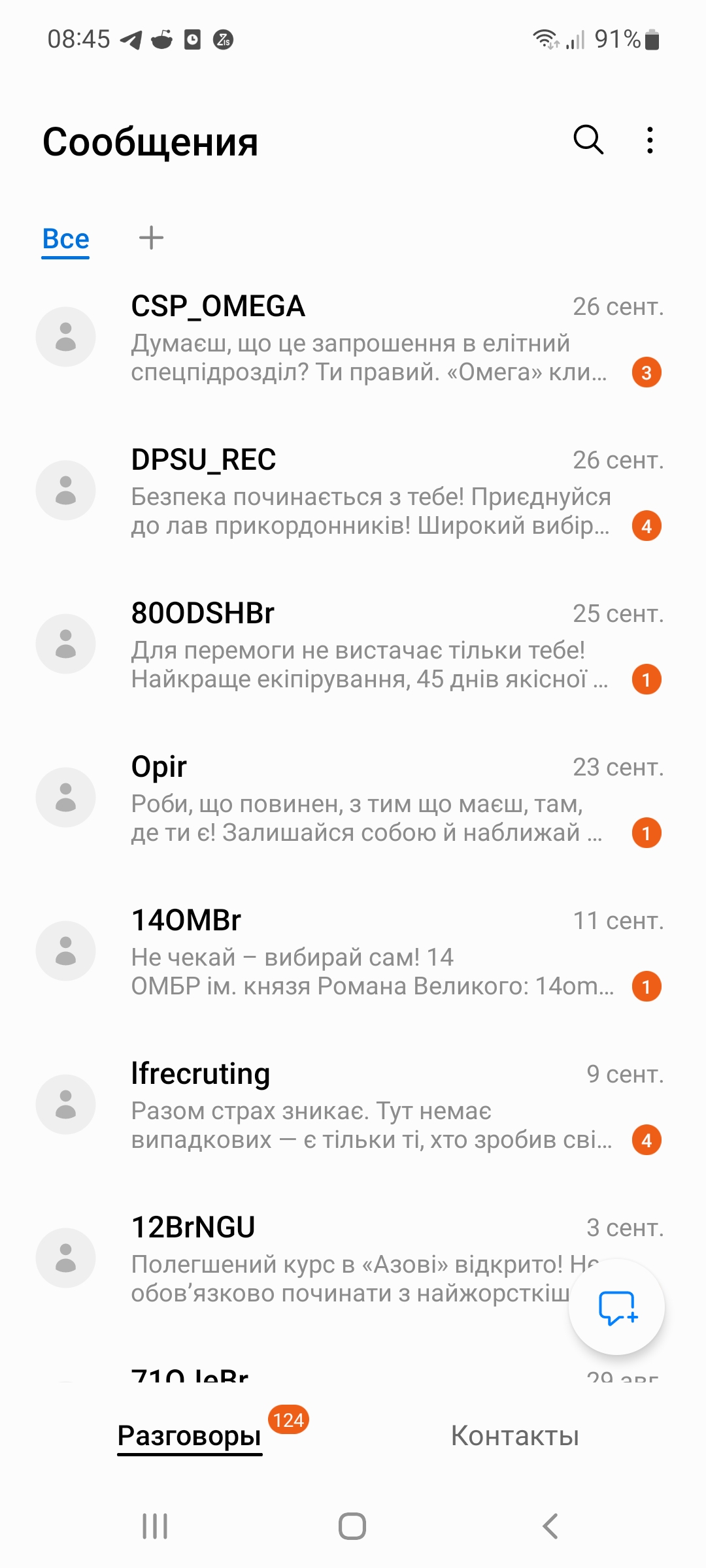 Ave Mina Как-то скипал приходящие смс не читая, сплошной спам же приходит. Но тут заметил, что их свыше 100 насобиралось. Зашёл в папку и понял, что зря наговариваю на отсутствие работы в стране. Сплошные деловые предложения по "контрактам". Скоро в папке с смс-ками все подразделения соберу.