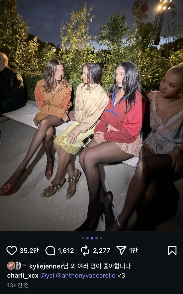 Однако изначально снимок был групповой: на фото позировали четверо, включая Розэ из BLACKPINK, которая, к слову, единственная из них является официальным амбассадором Saint Laurent.