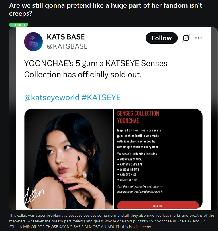 >>1334606 So true, my friend. Кайфуем с того что есть. К-поп компании на заработанные ранее деньги пытаются экспериментировать, мы должны как наблюдатели просто получать удовольствие пока бабки не окончились. Это как перестроечные фильмы, когда государство всё ещё выделяло деньги, но цензуры строгой не было. Столько годноты в пару лет уместилось. Мне бы кто сказал, что чмикс будет главным активом Джупа года два назад (даже год назад), то я бы рассмеялся. Альбом твайс последний продался 600к за неделю, а у чмикса за первый день 470, вот как так вышло? У них кстати есть версии альбома с пластинкой, давно такого в к-попе не видел
