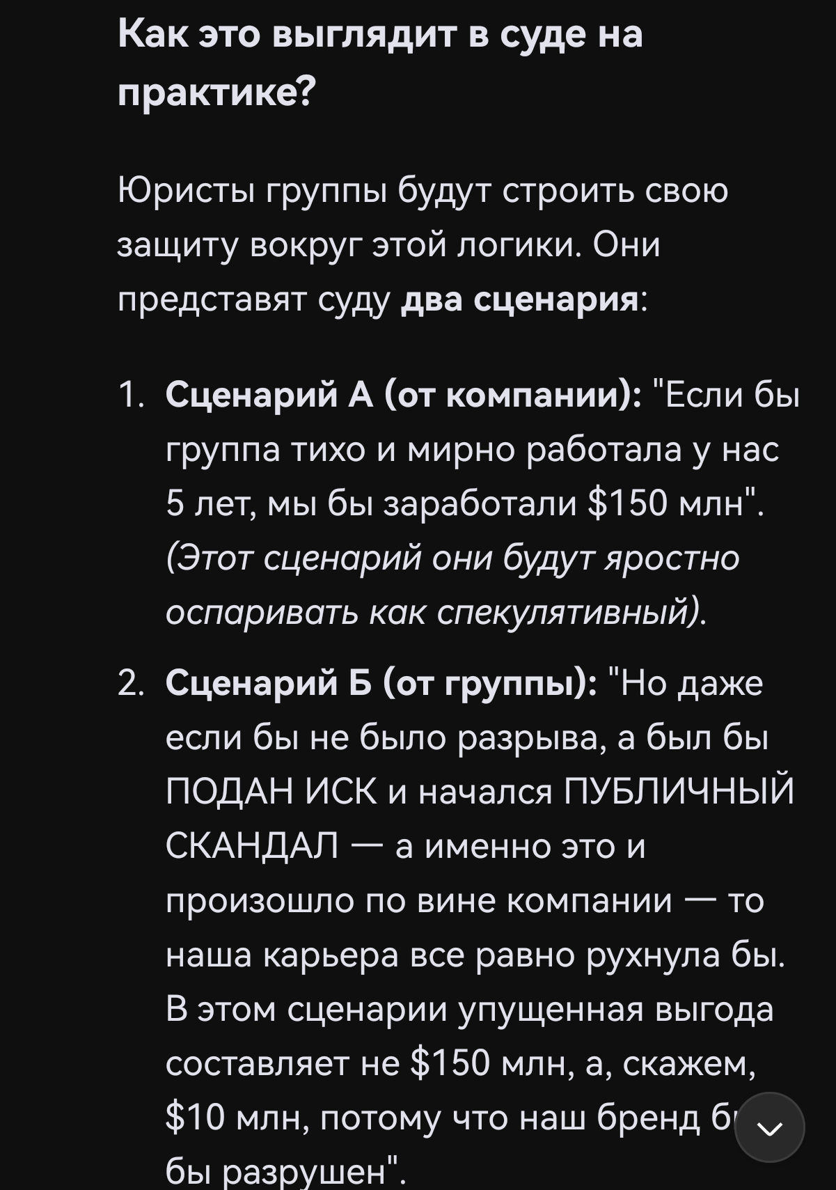 >>1346560 >и того, как всё произошло в реальности Произошло то, что группа дала заднюю, кто нибудь это ожидал? Нет. Все думали что они будут до конца. Я уже до всего этого говорил, что суд основывался на бесплатном расторжении контракта и если он прогорит, придется подавать в суд на платное расторжение, но как итог двое вернулись в компанию и остальные последовали.