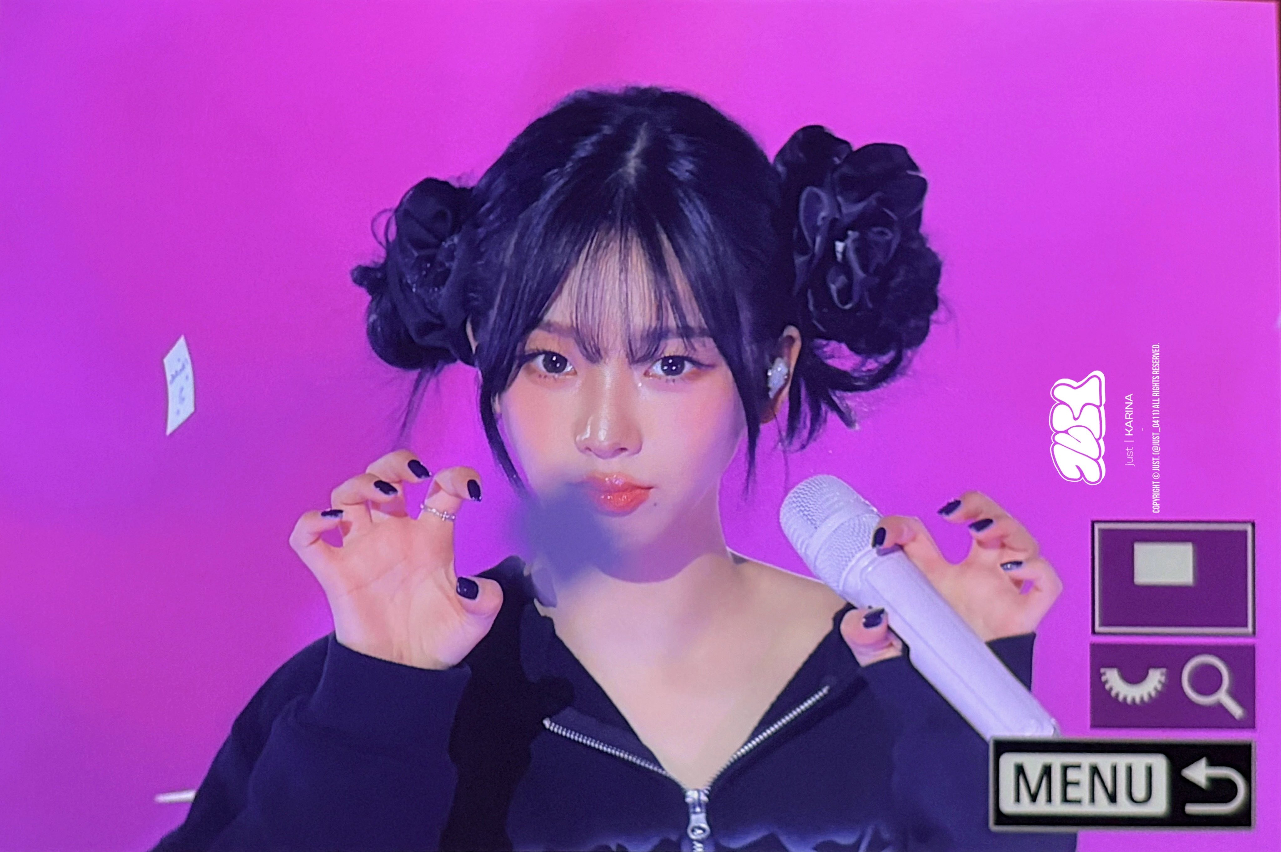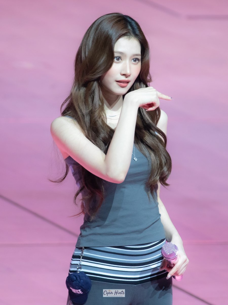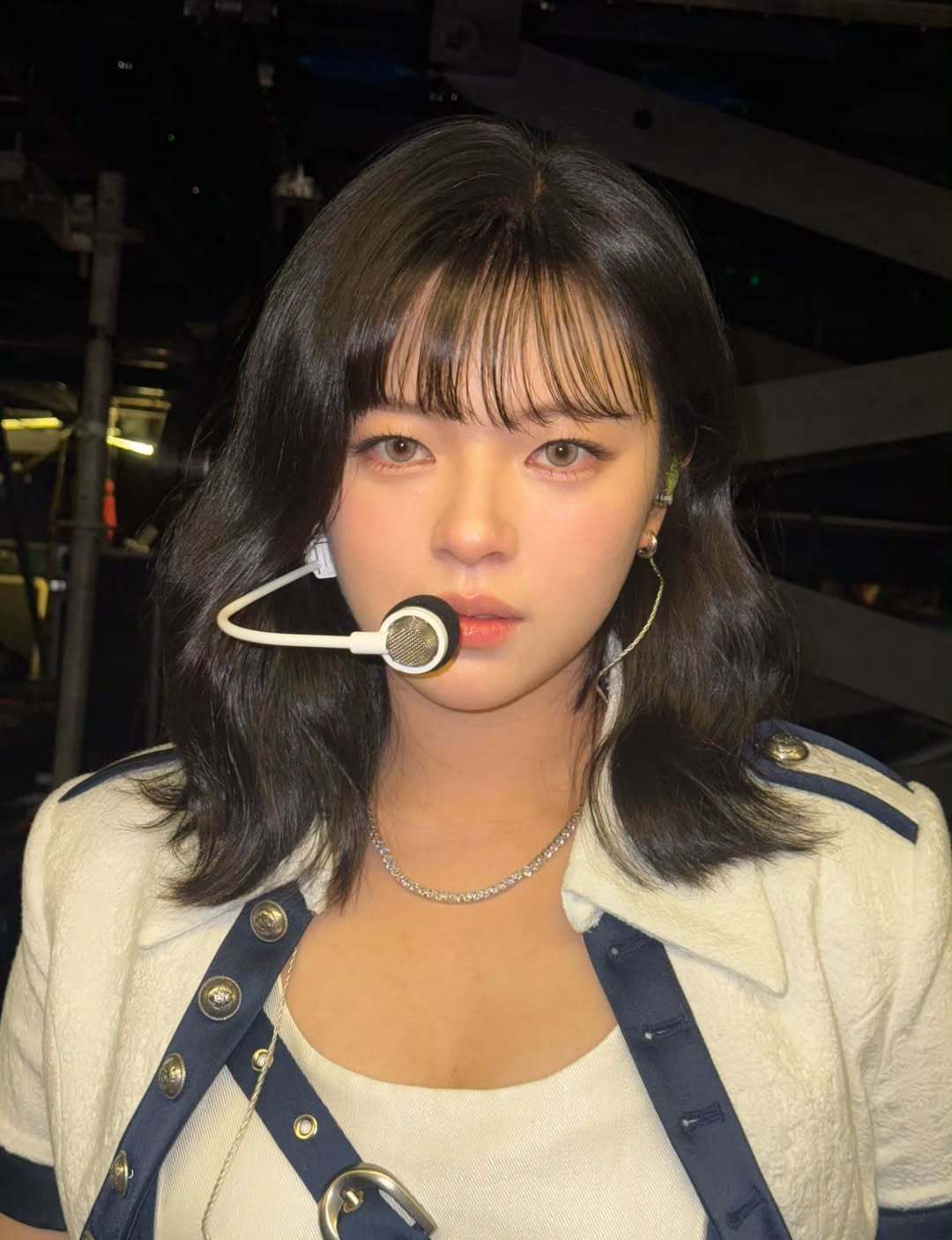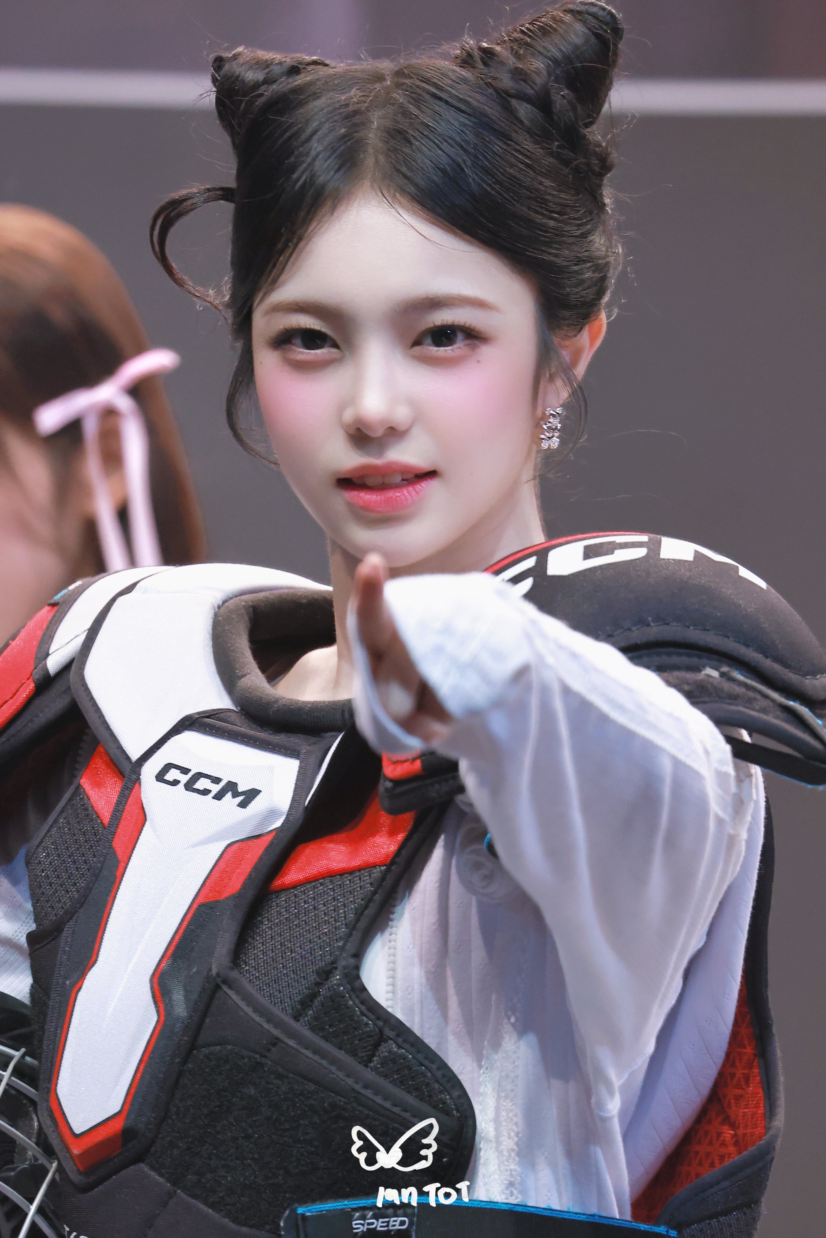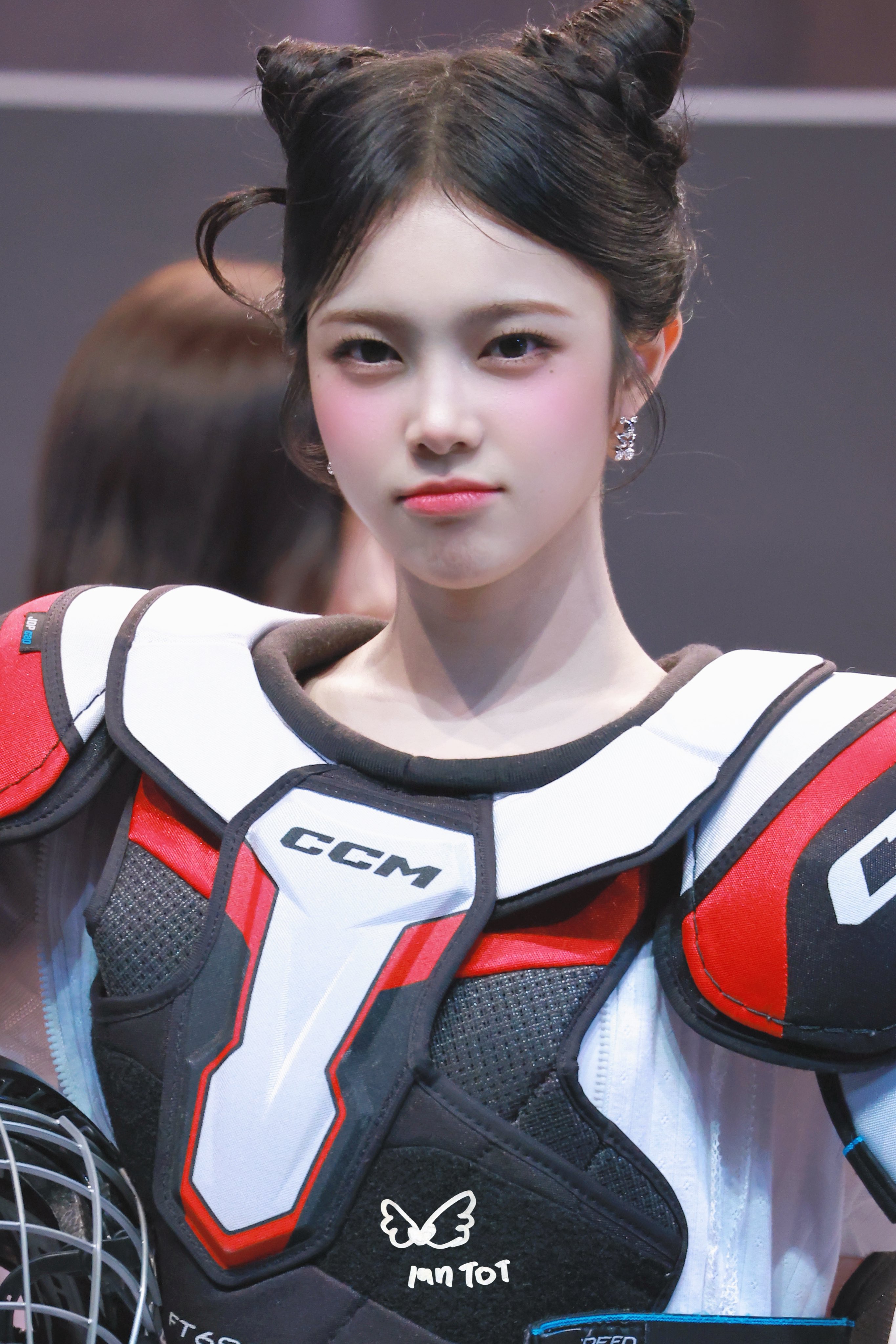 Блииииин какая у нее необычная оригинальная внешка Жаль что она попала с такую группу где её вижуал сдерживают в рамках Представляете если она была в эспе вместо Жизель ..... Она как хищница претворяющаяся жертвой, но взгляд выдает её ..... Очень нравится Странно что итт ее не фажат......