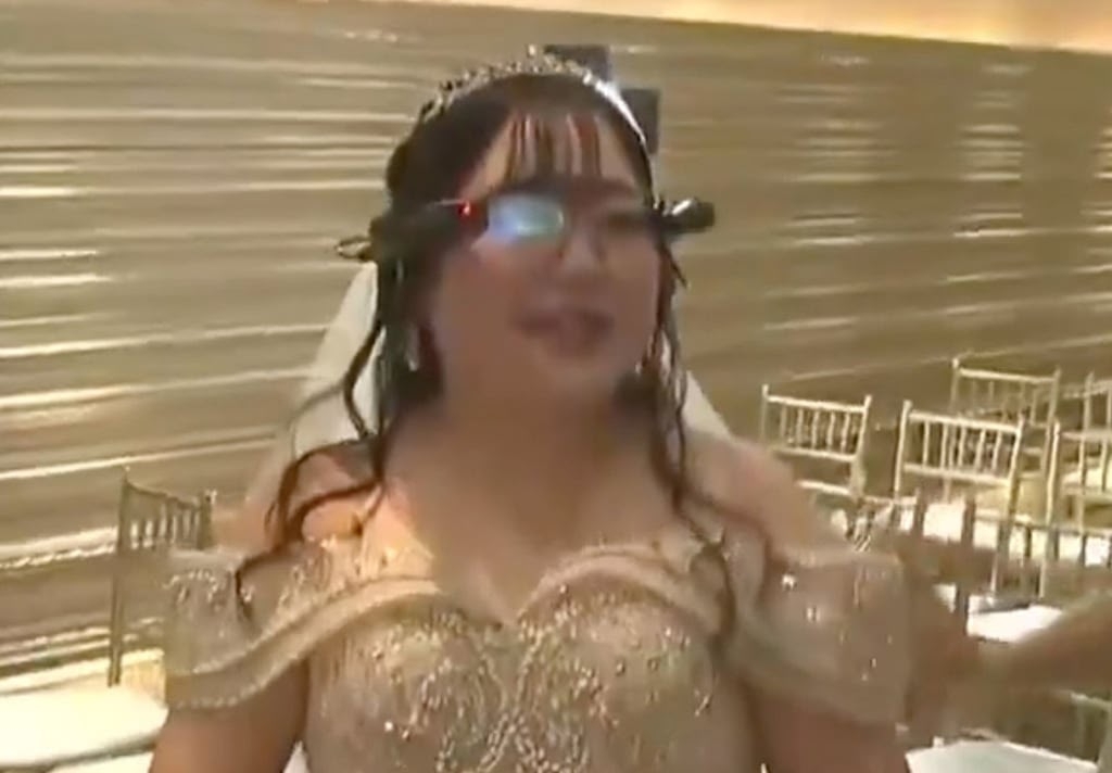 Надев белое свадебное платье, Кано наделила очки дополненной реальности, пока её семья сидела в зале.
