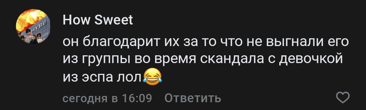 Все я понял, стратегия адвоката хайб задавать подобные вопросы Мин Хиджин, чтобы потом платить журналистам, дабы те уничтожали ее на инфополе. Никакого отношения к делу не имеют, но можно печатать кликбейтные заголовки.