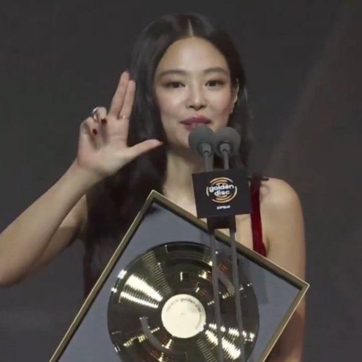 Вчера на премии Golden Disc, получая награду Blackpink, Дженни показала знак пистолета