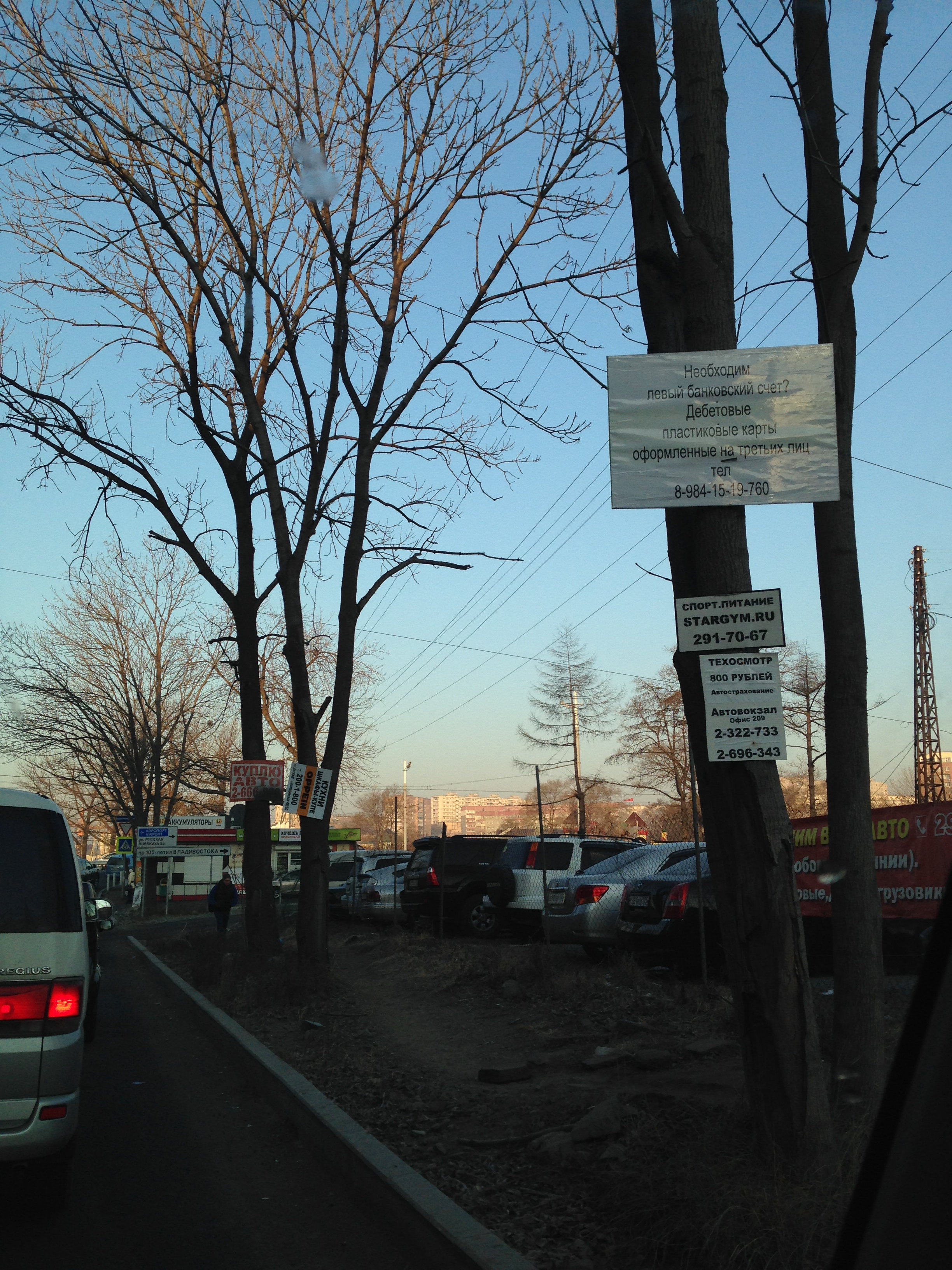 >>2005 Блядь, вы все - таки дикари там. Нахуя деревья поганить? У нас щиты рекламные выставляют, к дереву на цепочке, чтоб не спиздили и все. Правда 1.2к без заезда стоит лел.