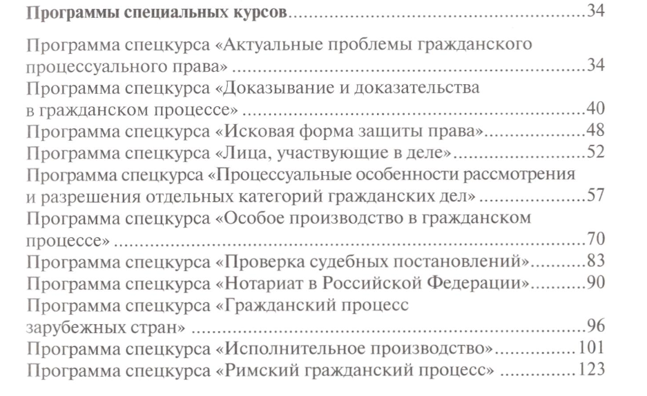 в итоге, первые курсы физра, математика, то история Руси или Римское право, ТГП и т.п., не помню уже. потом выбираешь профиль, и пары по гражданскому прав, по уголовному, арбитражный процесс и т.п., где просто напросто изучают ГПК какой нибудь и дают объяснение, что это такое.