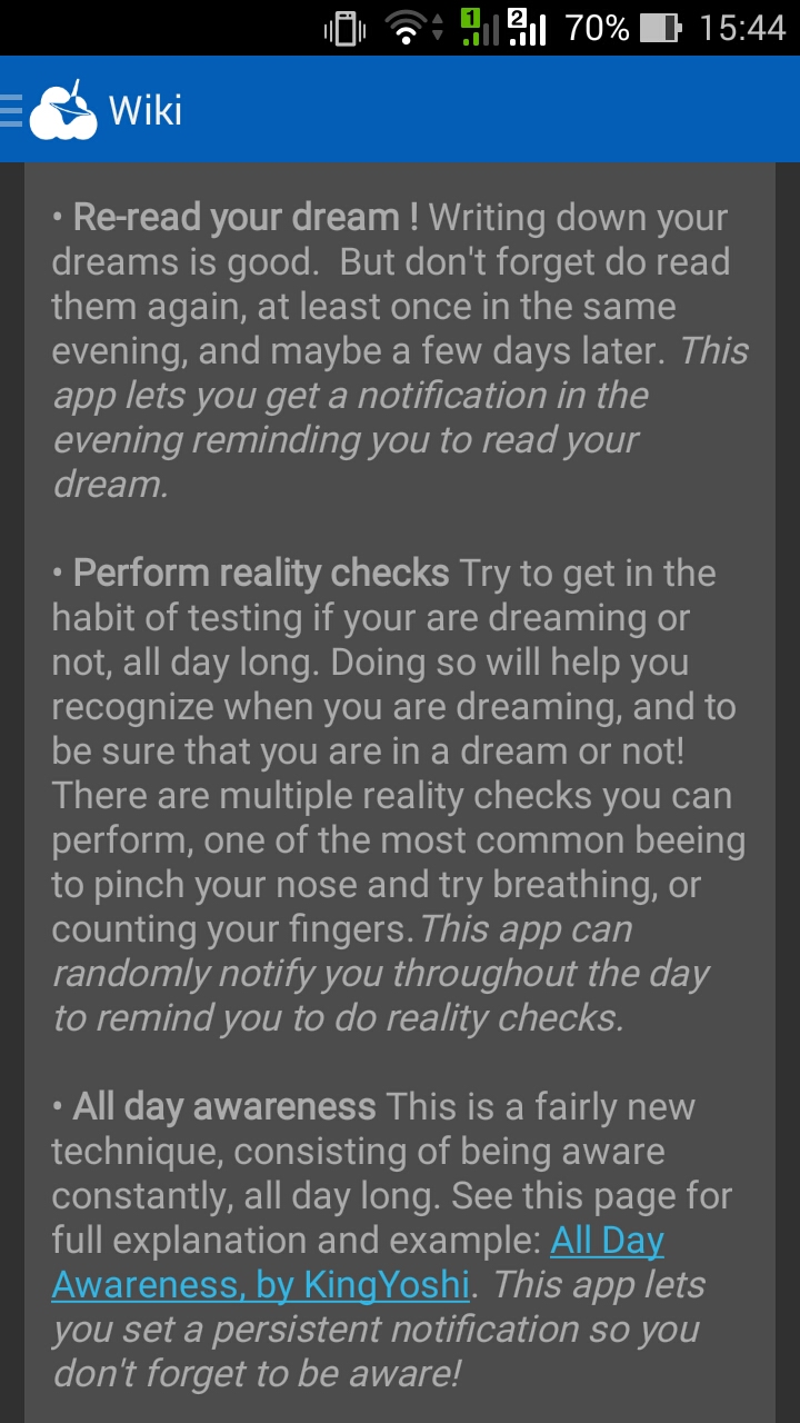 Из ощущений: реалистичность картинки лучше моего последнего ОСа, тактильные ощущения такие же, а вот сознание гораздо сильнее приближено к незаснувшему. Очень сильно помогало то, что помнил о ЦЕЛИ, это было прям красной тряпкой, напоминающей мне о том, что я сейчас сплю.