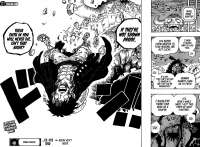 Возможно фейк, но... >Chapter 1014, Mutation >Chopper is fighting Queen with Marco and Drake >Queen is relieved since he thought Chopper was awakened for a second >Queen plugs some tubes into his neck and says he and Chopper are kind of similar >Queen uses mutant virus to enter different forms, Chopper says they're exactly like his rumble points >First one is huge muscles with tiny legs, knocks Drake through the walls of Onigashima >Second one dodges Marco, looks like a melting cartoon kaido, blasts him with mouth lasers >Chopper gets enraged and breaks his fist on the third form, an even fatter queen with a tail and dinosaur skin, looks like self-destructing cell >Queen thinks he can win without it, but he feels like teaching them a lesson >AWAKENING >Silhouetted but towers over Chopper >Chopper determined to fight no matter what, but immediately crushed and transforms back, calls Queen a monster >Queen about to kill him when someone yells, "Armee de l'aire!!!" >Giant spread, Sanji kicking zoro with sword in mouth, launching him like a shuriken to cut Queen's eye >>Attack is called Marimo Glaive
