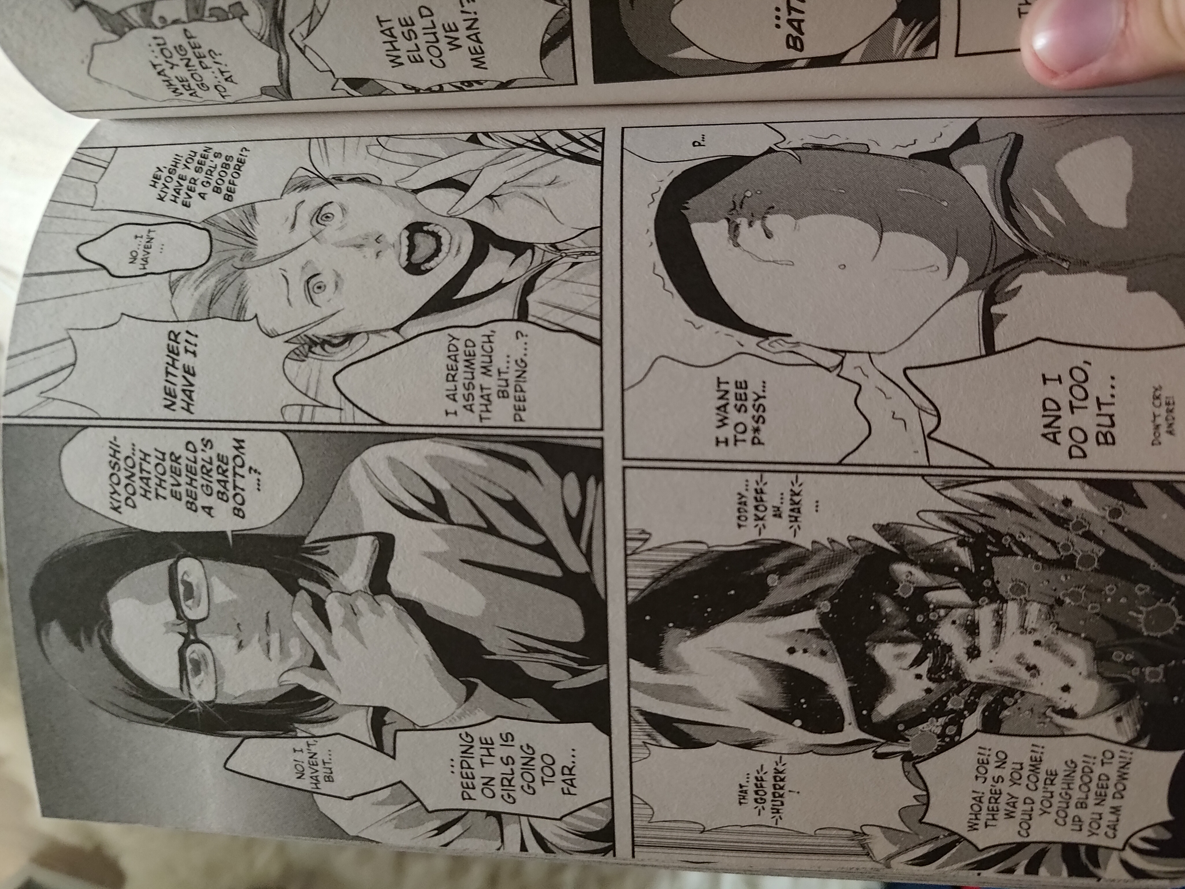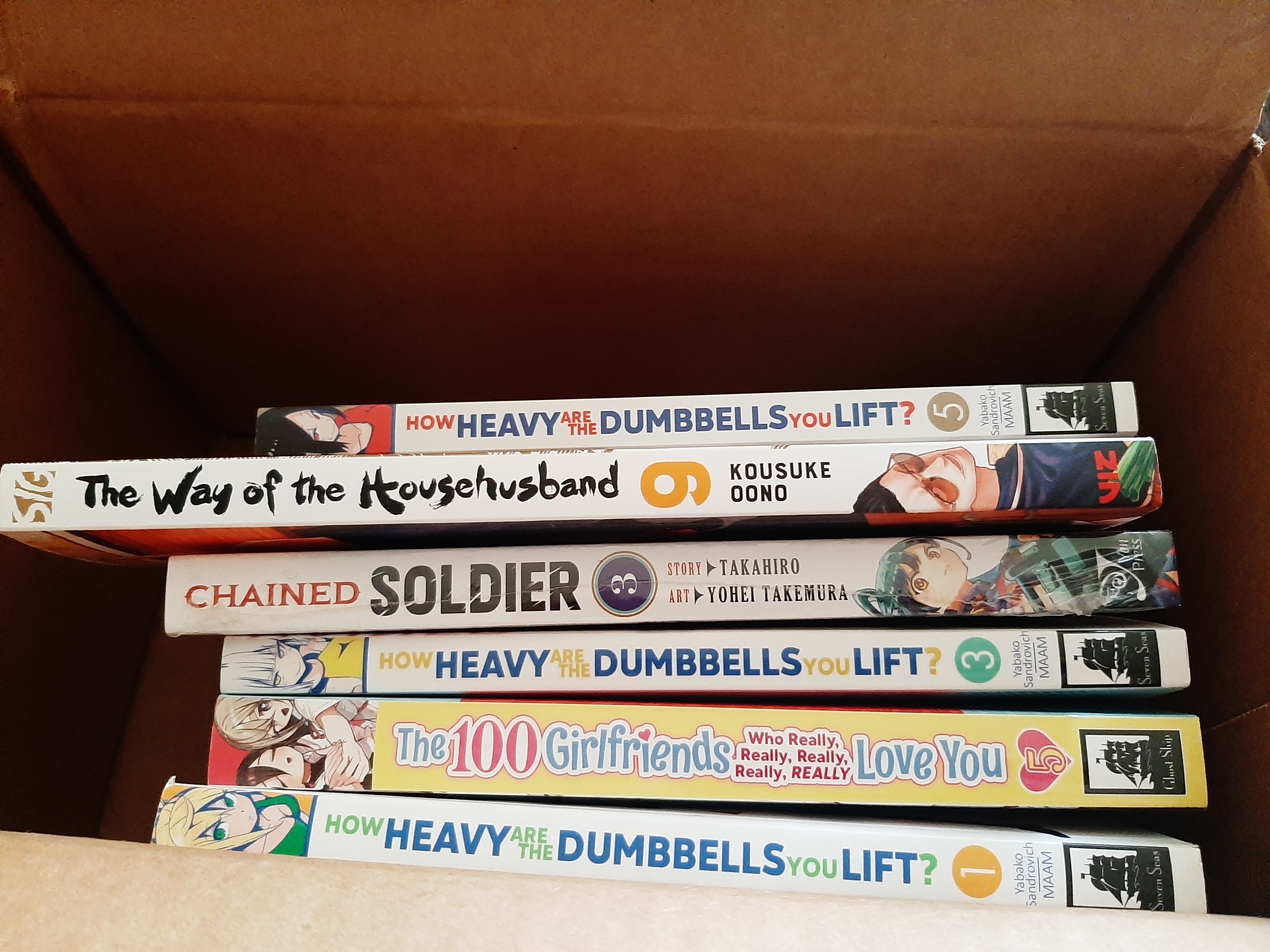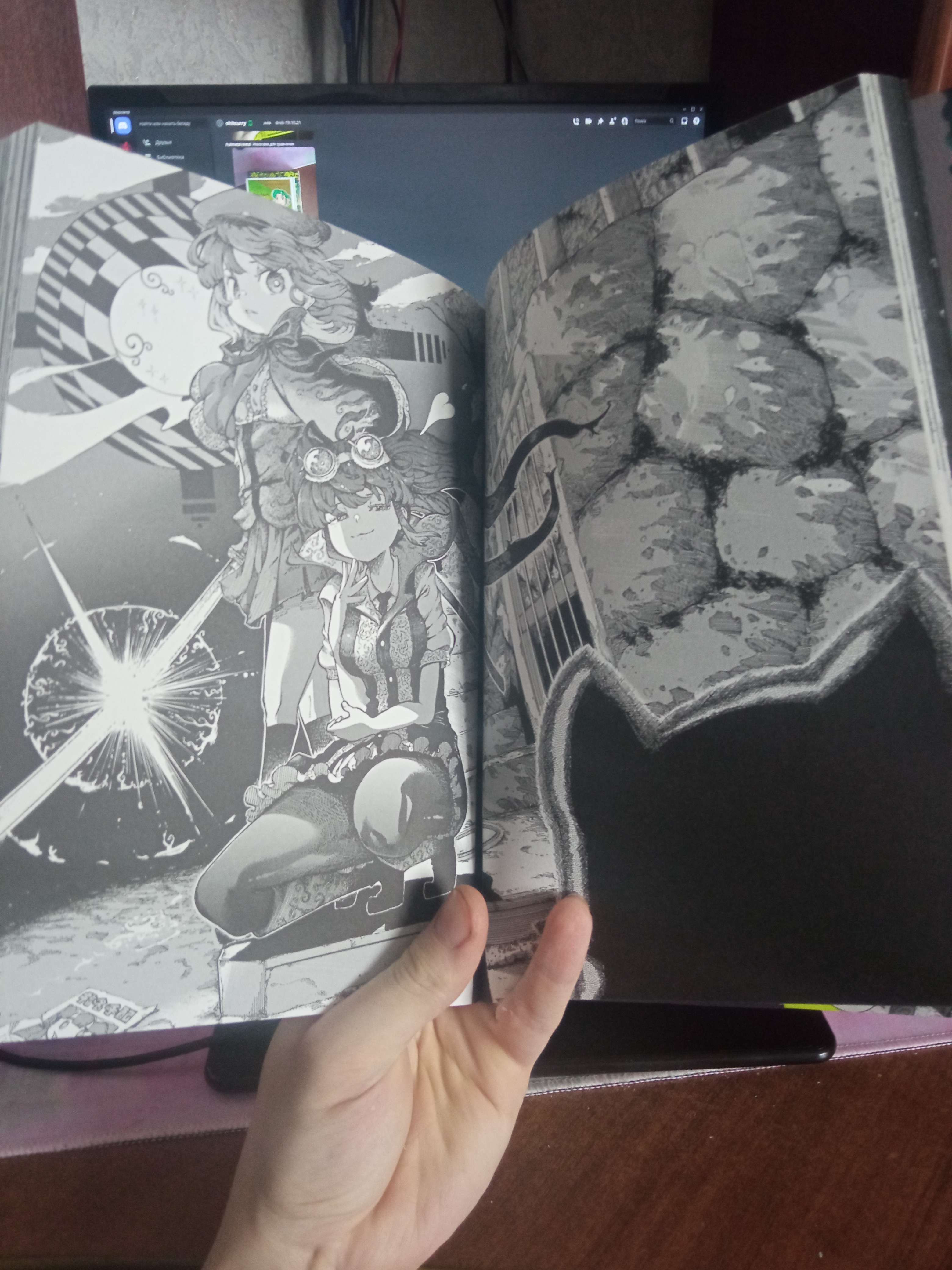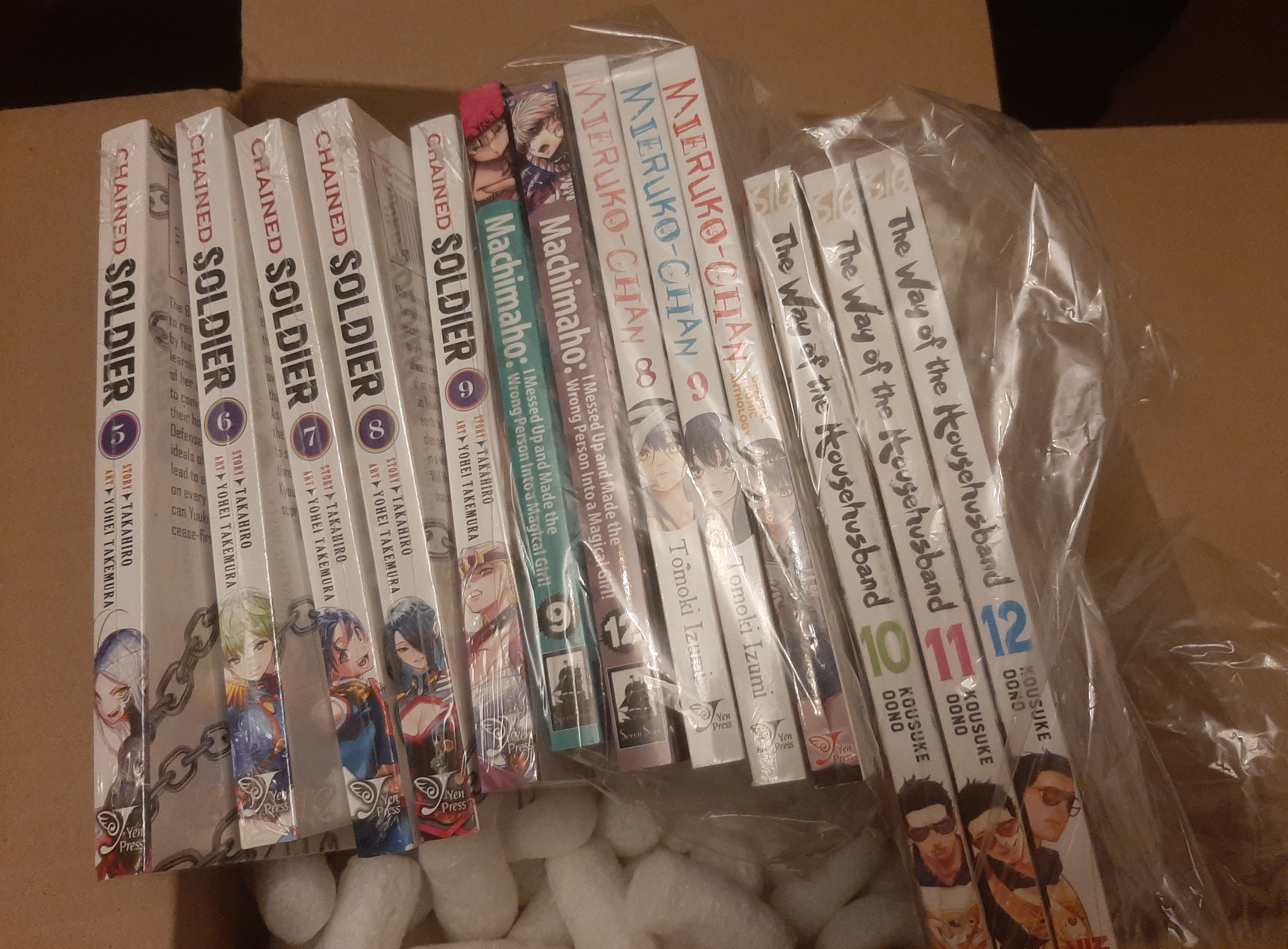Приехало добро. Немного удручает качество печати Chained Soldier. Новый ещё не раскрыл, но листал все предыдущие тома. Нет возможности ознакомится с японским томиком, но в английском какие-то ужасные скринтоны, или их печать, не знаю. Как-будто неправильно ужимают оригинальное изображение под размеры томика, и местами из (обычно) приятных глазу скринтонов выходит какая-то каша. Причём у других манг от yen press таких проблем не видел. С миеруко-чан, ёцубой и элден ринг всё збс. Экономят, ушлёпки, на кумерах.