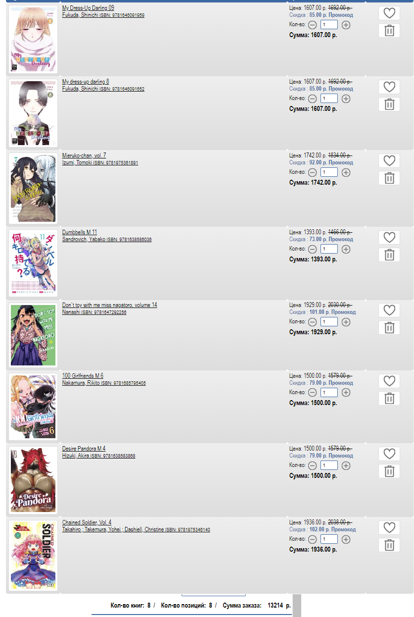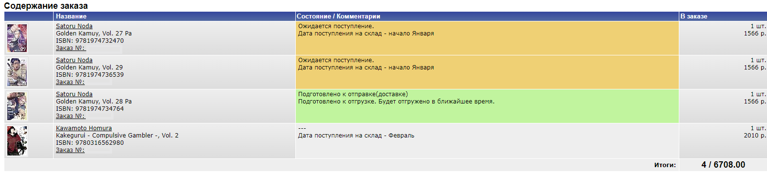 И небольшие расчёты, мб кому интересно будет. Стоимость всех книг по текущему курсу выходит примерно 7800р. У меня валюта осталась ещё со времён, когда по ~68 закупал. Грубо говоря, отдал тогда ~5400р. за всё. Стоимость доставки bxb вышла 3389р. Вес посылки был 2.02 кг. Суммарно ~11200 выходит. Если б вес был 2.06 кг, +800р ещё бы вышло хех Ценники за доставку пипец выросли. Вот тут >>2089287 4061р за 3,628кг, сейчас это более 6к. В логобуке с промокодом эти же книжки в 13214р выливаются. Причём не сказал бы, что ценники зашкаливают (кроме нагаторо и солдата), вполне норм. В общем, если логобук ценники не повысит, пока плюс-минус так же выходит.