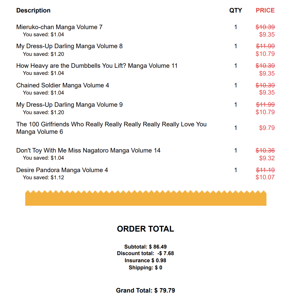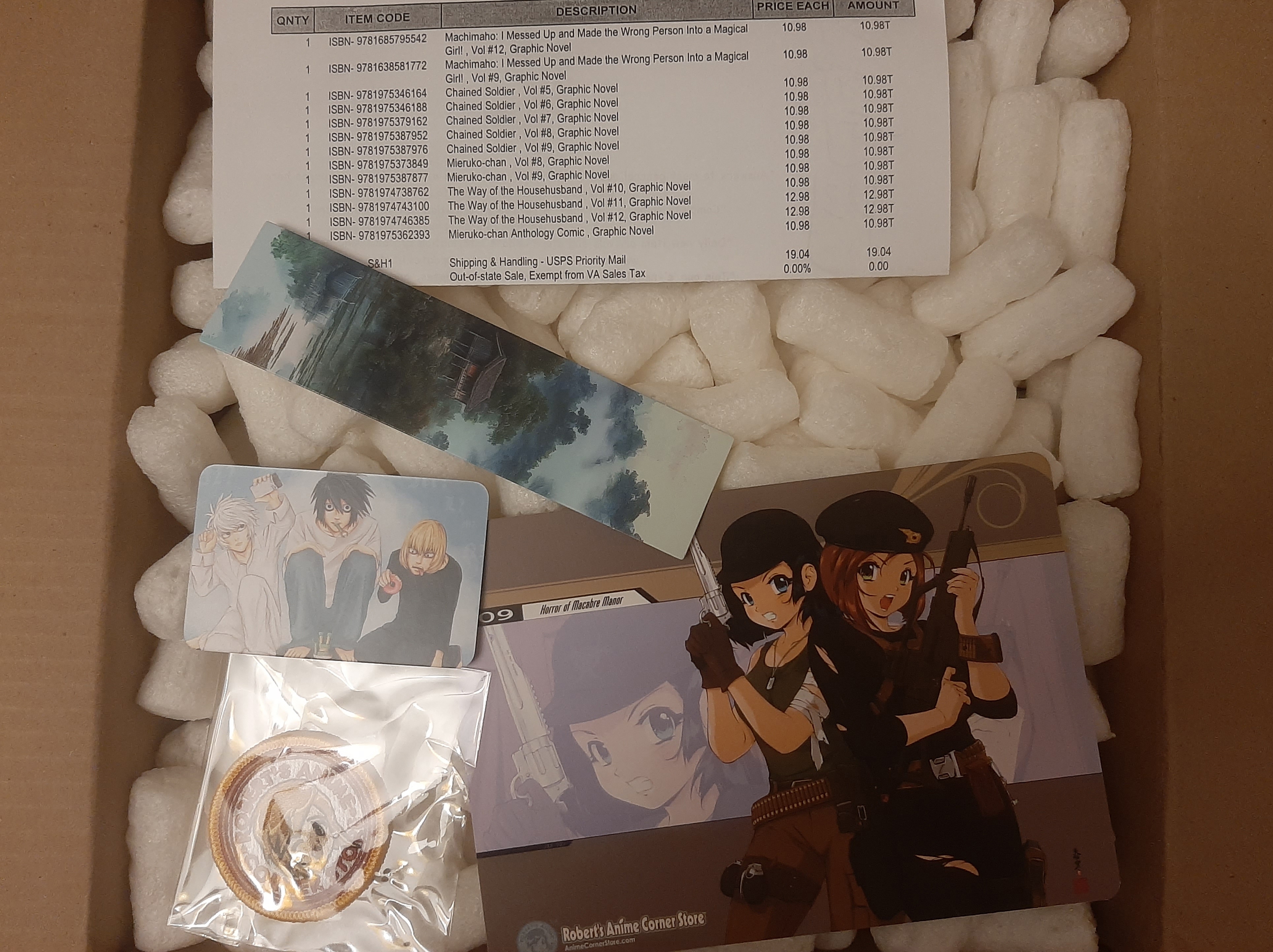 Приехало добро. Попробовал магазин animecornerstore, всё максимально целёхонько добралось. Коробку заполняют вот такими воздушными штуками (пик 1). Мангу без плёнки запаковали в пакетики небольшие. Мусора какого-то ещё накидали в виде закладки, нашивки и другой лабуды. Ща пока возможности нет повзвешивать мангу и коробку, чтоб посмотреть, насколько тяжёл наполнитель оказался, но в руках коробка без манги кажется очень лёгкой. Ценники видны, доставка usps в 19 бачей вышла. У animecornerstore от 99$ есть бесплатная, но сам сервис доставки какой-то невнятный. Немного стрёмно им было. Из магазина до склада в Делавэре ехало 3 дня (с 16 декабря по 19). Магазин не так далеко располагается. Через боксберри снова отправлял. Пиздец дорохо. Вес вышел 2,78 кг, 6352 рубля со страховкой. Больно. Но ехало имхо быстрей, чем раньше. 20 декабря посылку приняли на складе, прям перед выходными. 24 было готово к отгрузке, 26 - отправлено. 6-ого получил. И то я в постамат 5post заказывал, в отделение самого boxberry числа 4-ого бы уже добралось.