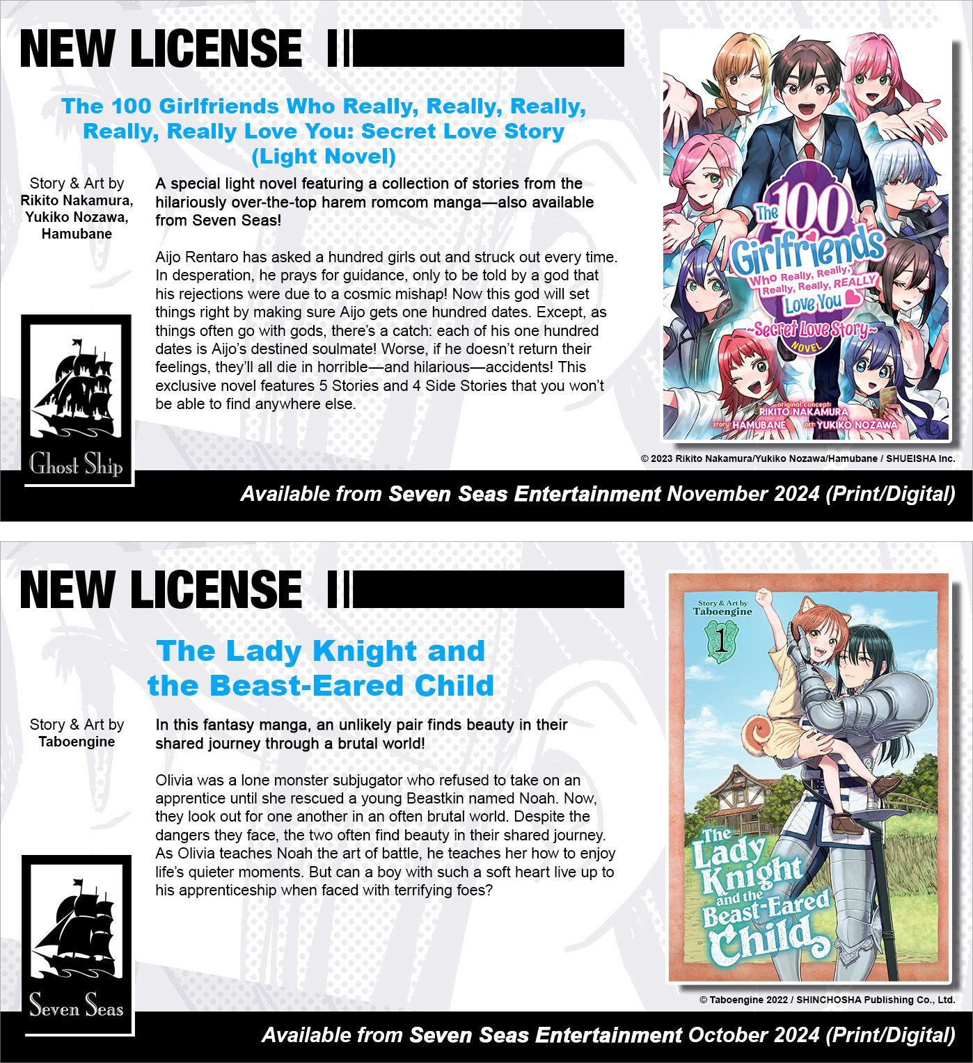 И пара анонсов от seven seas/ghost ship: 1 Лайт-новелла по The 100 Girlfriends Who Really, Really, Really, Really, Really Love You 2 Onna Kishi to Kemomimi no Ko / The Lady Knight and the Beast-Eared Child