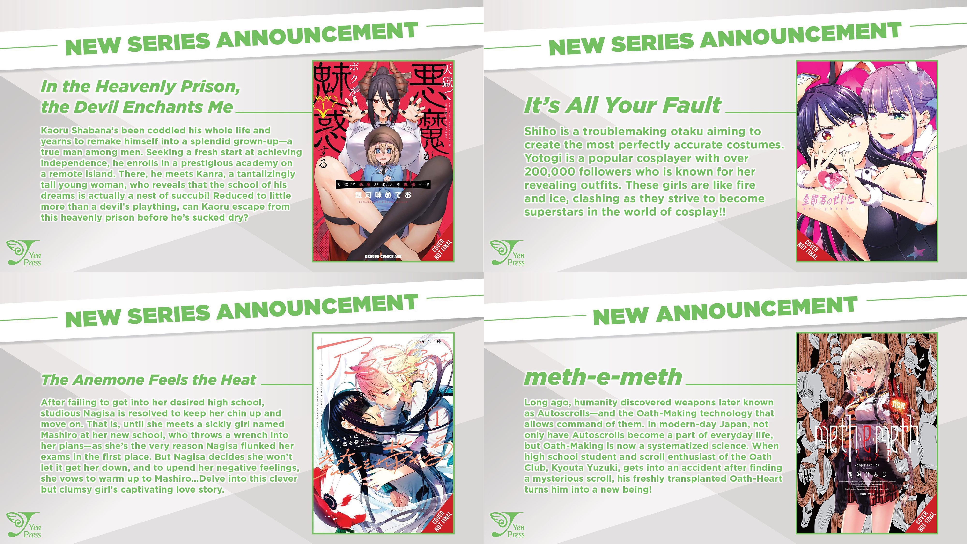 Не мог не принести, т.к. люблю этого автора. Seven Seas выпустит на английском "Kessa mo Yuraretemasu", от Eiji Masuda, создателя "Jitsu wa Watashi wa". Милейший ромком с весьма смешными шутками и великолепной рисовкой в фирменном стиле автора.