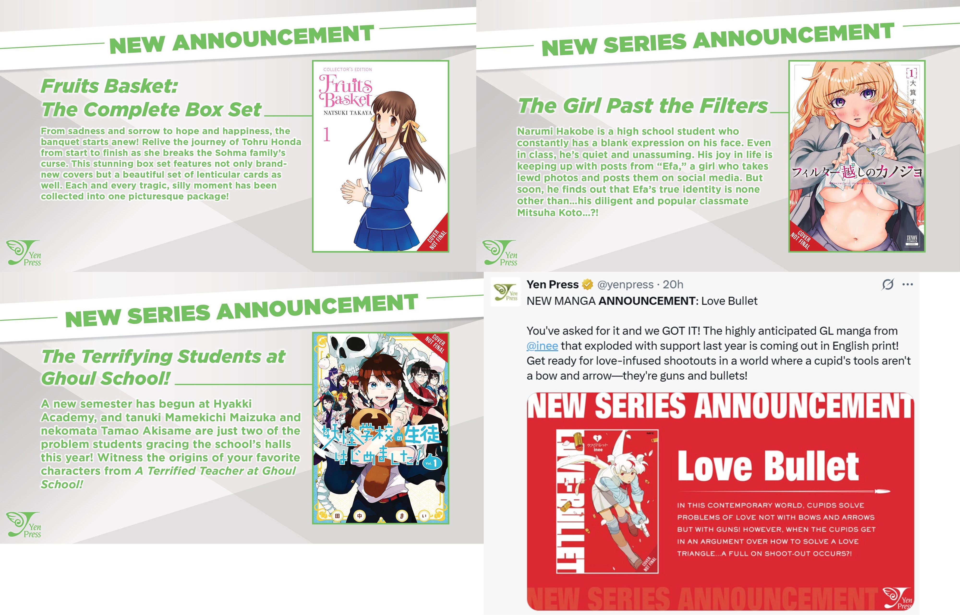 >>2210748 >Не только Поискал по паре популярных тайтлов издательств коданшы, севен сиас, йенпресс и вертикали, ни одного не нашёл. Всё-таки хз, че там кроме VIZ найти можно, и куда за этим лезть надо. >Но я рад, что они хотя бы с этого начали. Ну, эт да.