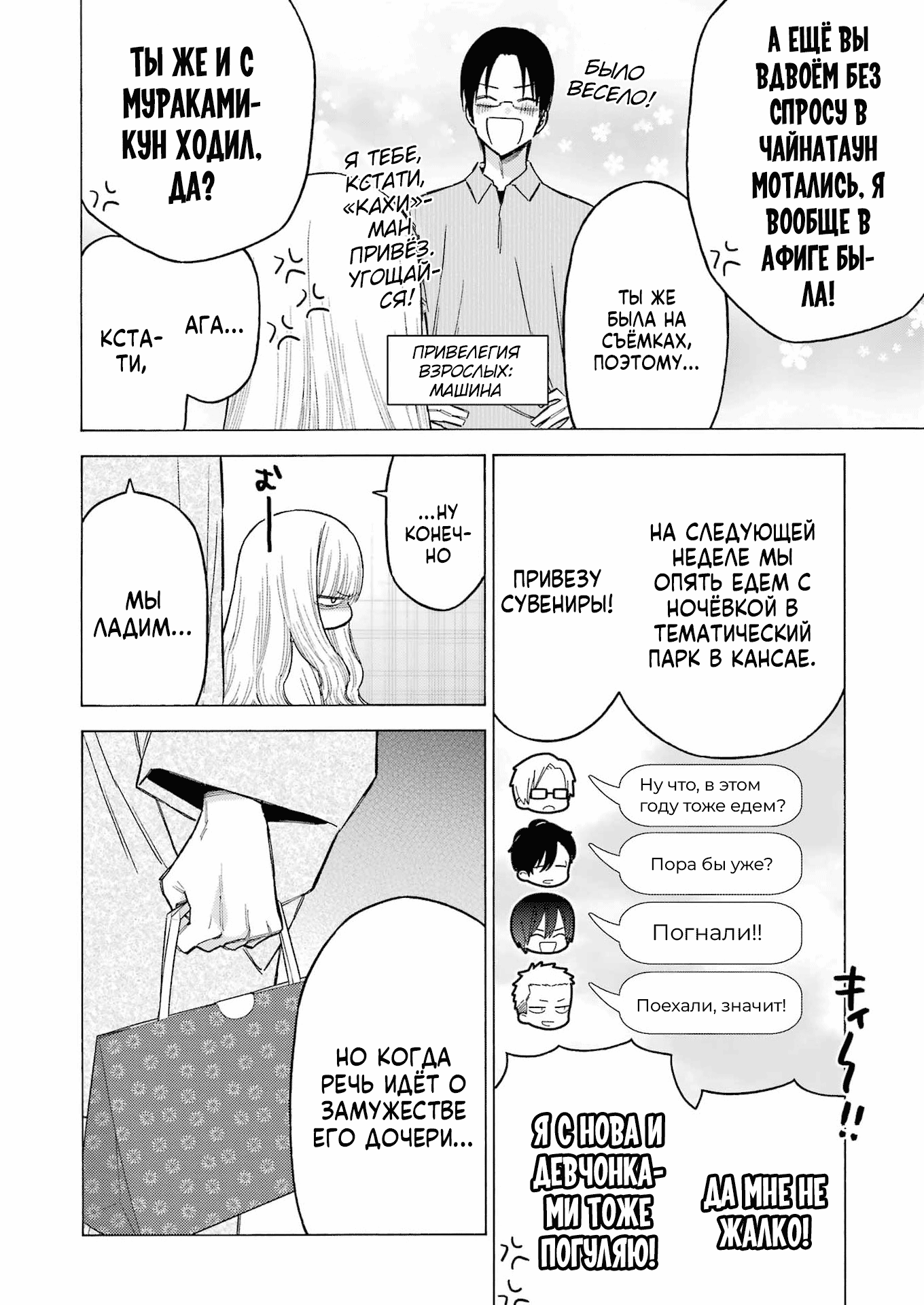 Super no Ura de Yani Suu Futari В принципе, то, что манга пытается показать или рассказать, ей удаётся неплохо. Таяма(да) довольно приятно уравновешенная, Сасаки не сильно раздражает. Милых моментов хватает, но они при этом не чересчур слащавые, хотя пожалуй иногда даже суховатые. Хотя всё это всё равно крутится вокруг одного большого недопонимания, но вот сейчас они наконец придут к взаимоосознанию, что Таяма и Ямада один и тот же человек, и дальше наверняка пойдёт шарманка вокруг их разницы в возрасте, где Сасаки будет думать, что ей нахуй не нужен такой дед, а она будет думать, что он её не воспринимает как любовный интерес.