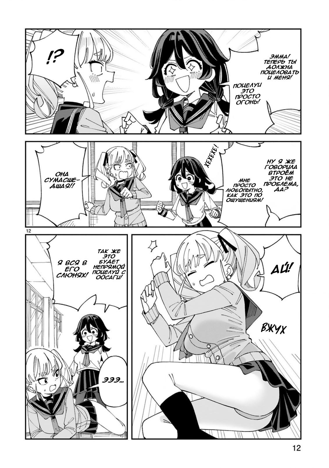 Тут мангаке, пожалуй, удалось выжать процентов 80 от того, что возможно было. Основная слабость, пожалуй, именно в персонажах - авторша видимо заранее решила сделать их максимально "обычными" и приземлёнными. Это, с одной стороны, позволило избежать совсем уж стереотипных краснь и шаблонных фраз, а с другой, сами их взаимодействия тоже достаточно обычные. Ну то есть не скажешь, что им прям очень интересно друг с другом или что их дико друг к другу влечёт, просто комфортно. Чаще всего всё ограничивается какими-то комедийными скетчами или дежурной мыслью "какая она милая" в конце главы. Но надо отдать должное, и взаимные подколы, и всякие маленькие дурацкие пристрастия, и совместные увлечения - всё это тут есть, и оно работает. Просто Рио чуть-чуть слишком невозмутимая, а Юя чуть-чуть всё ещё ояш, и их обоих не назовёшь неординарными.