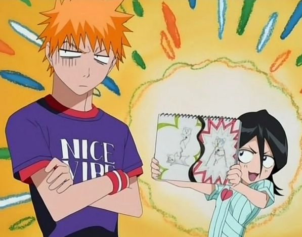 Q782: Что касается навыков рисования, Ичика унаследовала художественный талант отца или матери? A782: В плане рисования, она ближе к Ренджи, чем к Рукии, но у них обоих отвратительные художественные навыки.