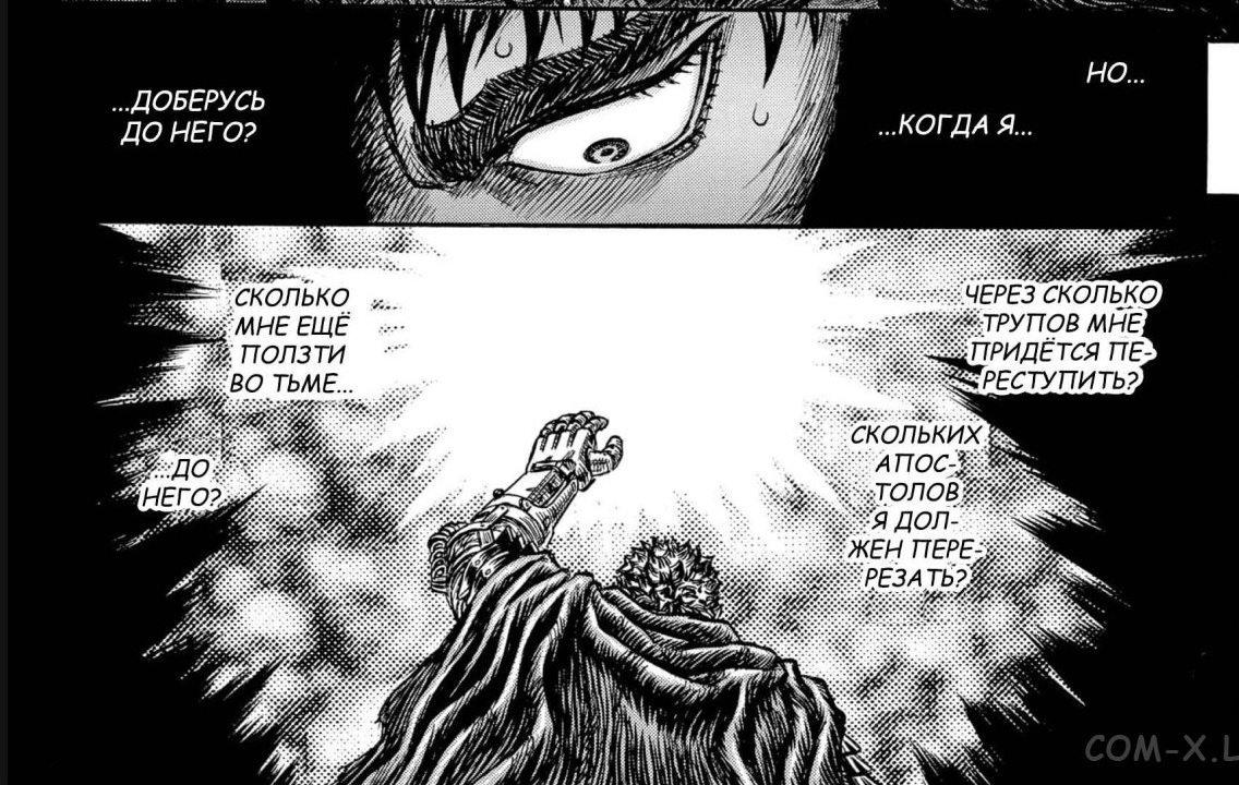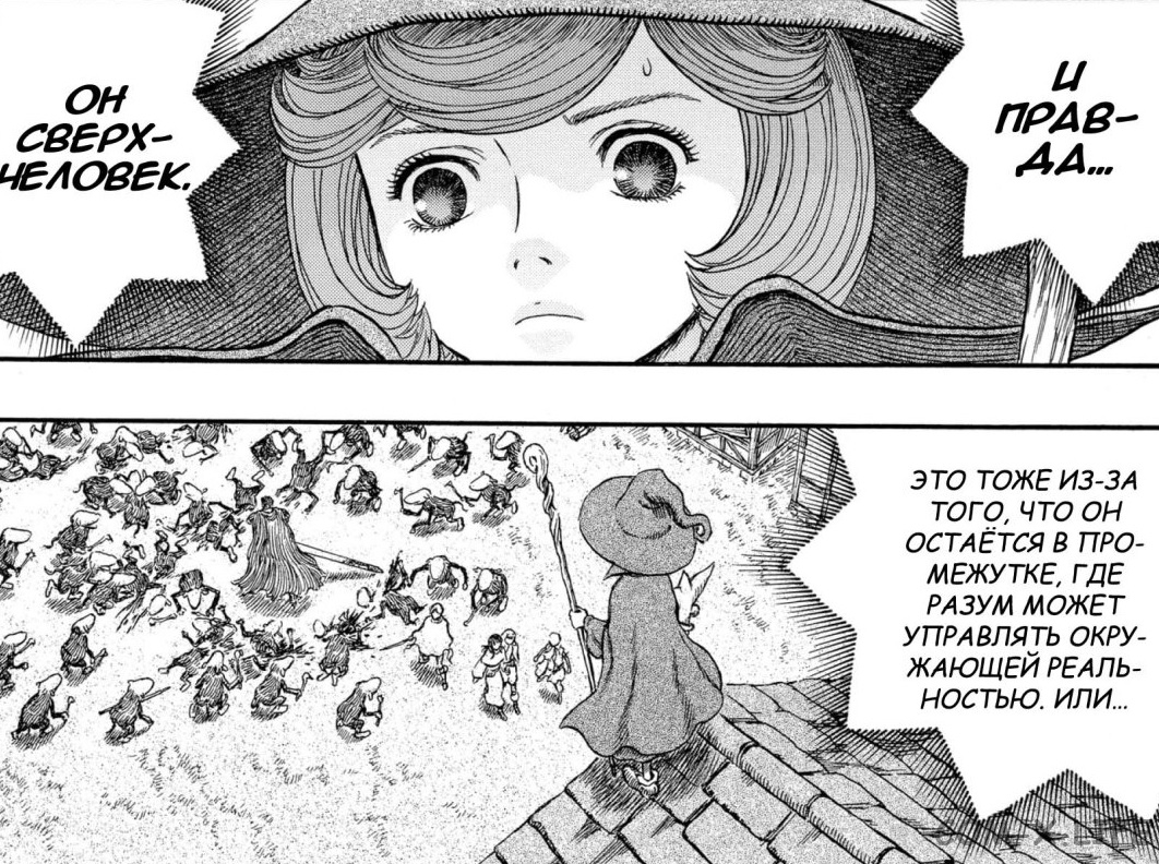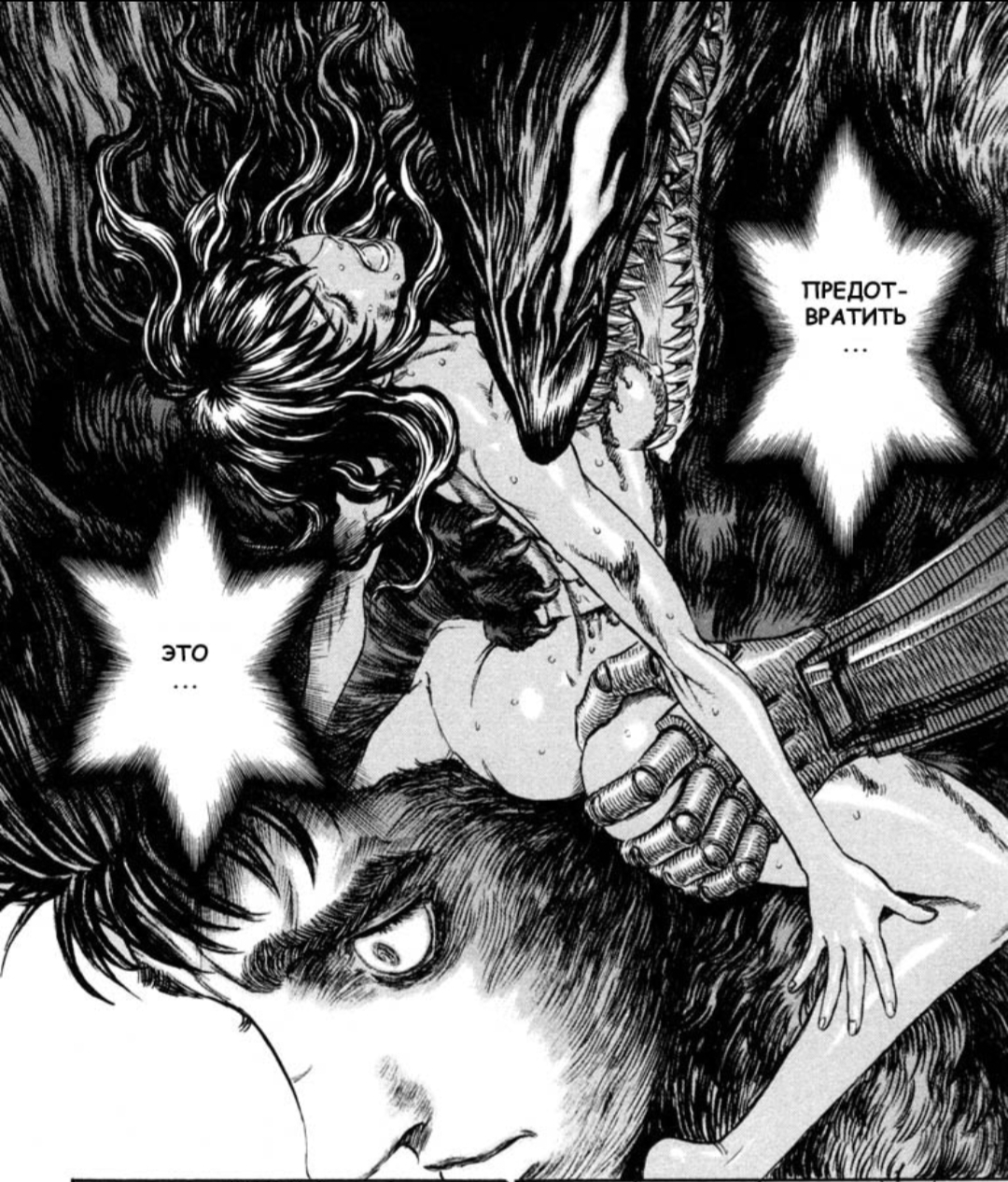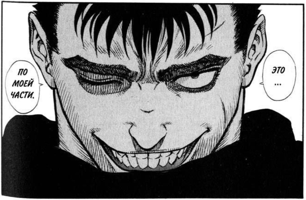 Ты не еби мозги, а прямо свой поинт вкинь, чтобы я мог без танцев вокруг тебя разъебать. Я вижу как ты несмело пытаешься наложить на мангу какой-то свой собственный нарратив который Миура просто не делал.