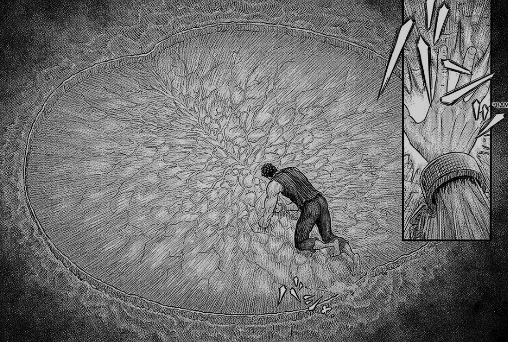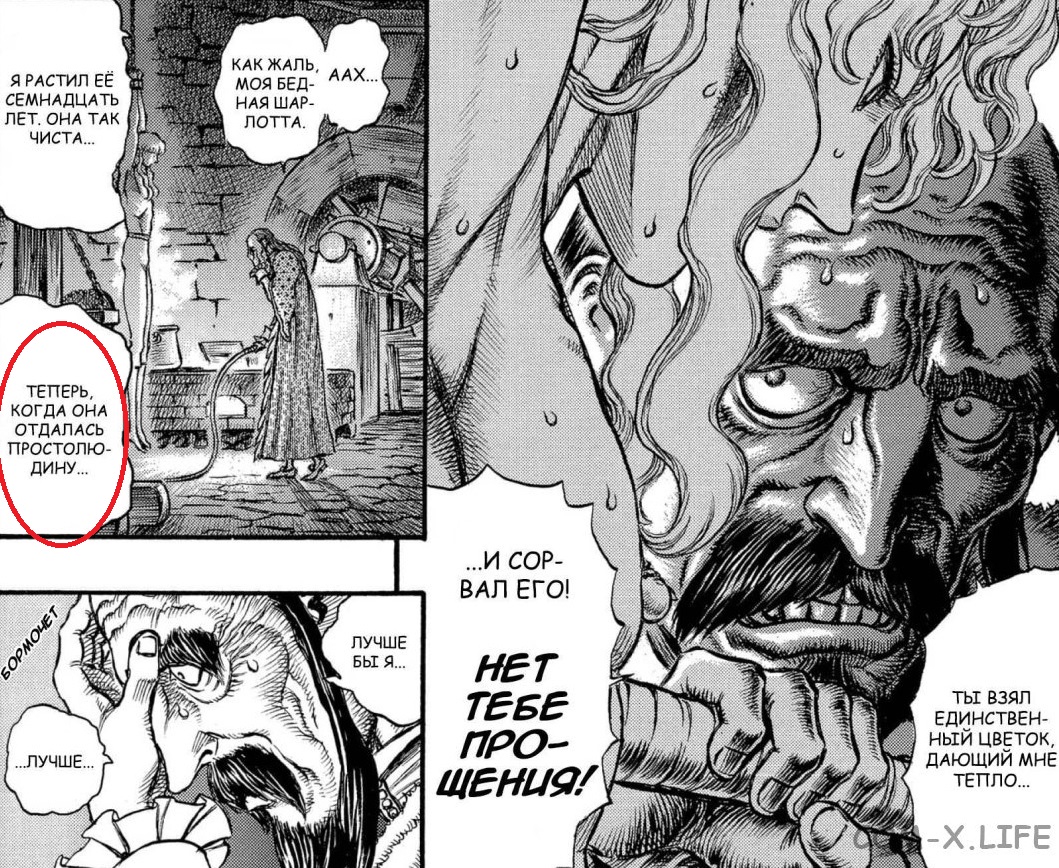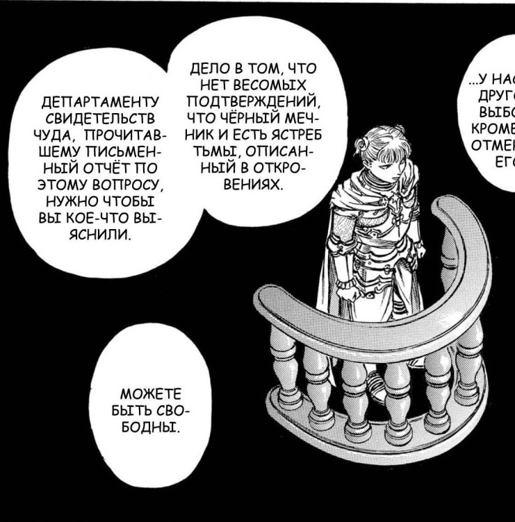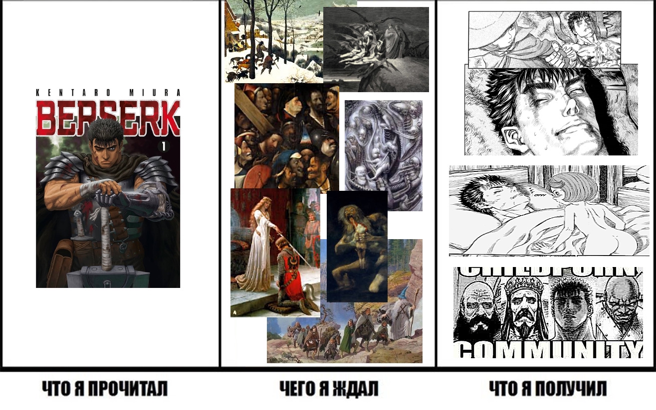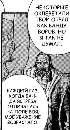 Ты не еби мозги, а прямо свой поинт вкинь, чтобы я мог без танцев вокруг тебя разъебать. Я вижу как ты несмело пытаешься наложить на мангу какой-то свой собственный нарратив который Миура просто не делал.
