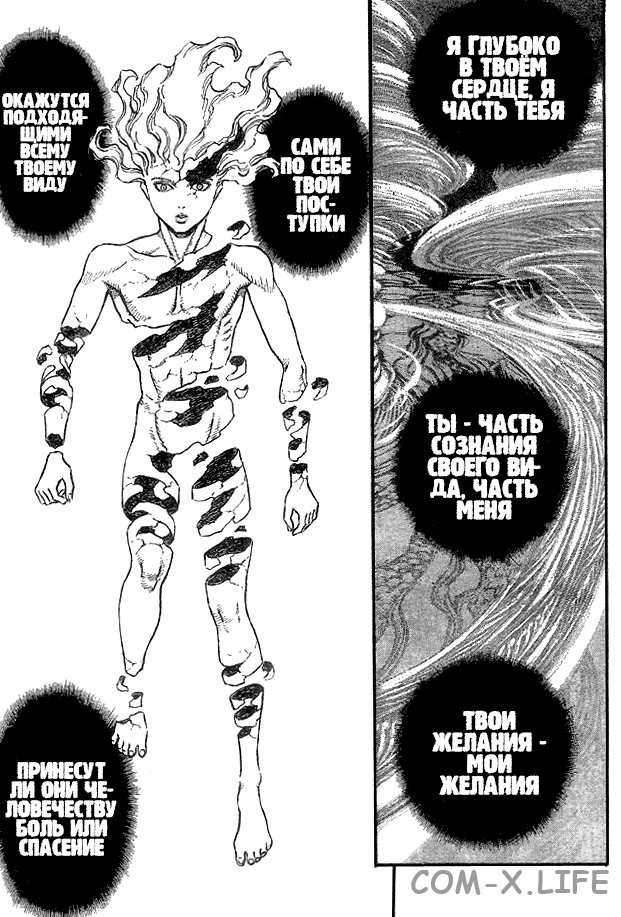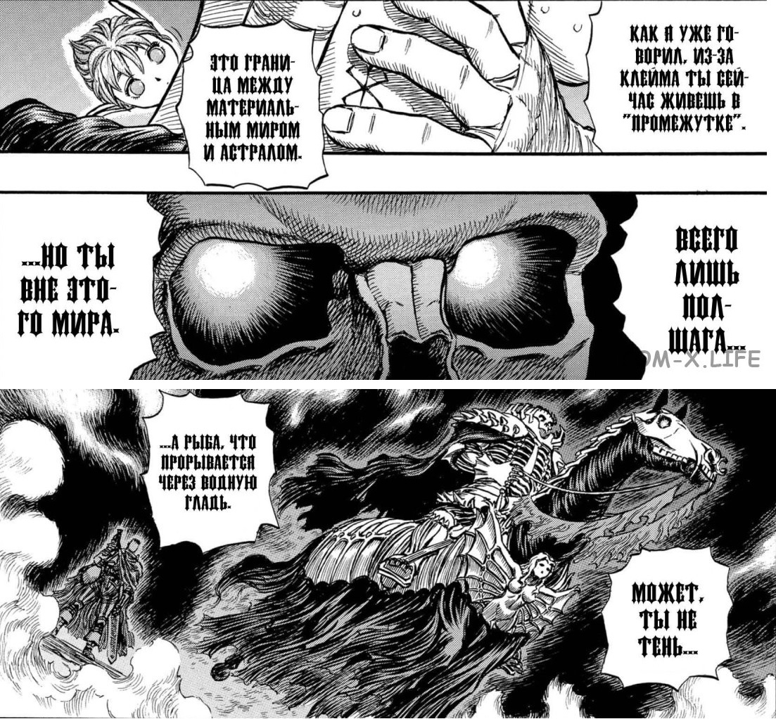 Алсо, пикрил из 37-го тома - Ширке в астральной форме сидит на ебале Гатса, когда того контузило внутри Морского Бога. Гатс прямо под Ширкой мысленно обращается внутрь себя к Зверю (по факту к доспеху в который он вплескивает жизненную энергию через астральную рану) чтобы совершить хоть какой-то рывок силы. Это четыре страницы подряд, ничего не вырвано из контекста. Обратила ли внимание Ширке на какое-то потустороннее пробудившееся существо Бездны блядь?