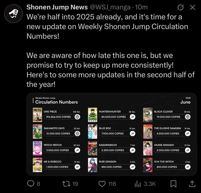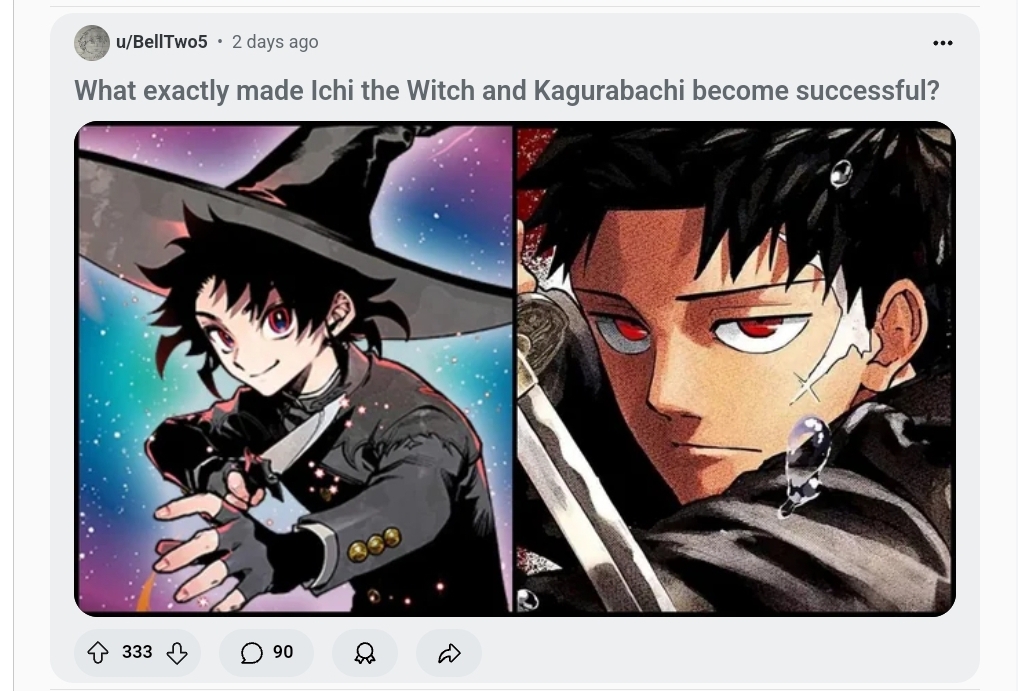 >>2440619 >Будто там какой-то мега заговор и любого более-менее перспективного новичка сливают, лишь бы он Ван Пис не затмил собой. Ichi the Witch уже год выходит. На мой взгляд, уебывает все, что публикуется в журнале. Очень веселая штука.