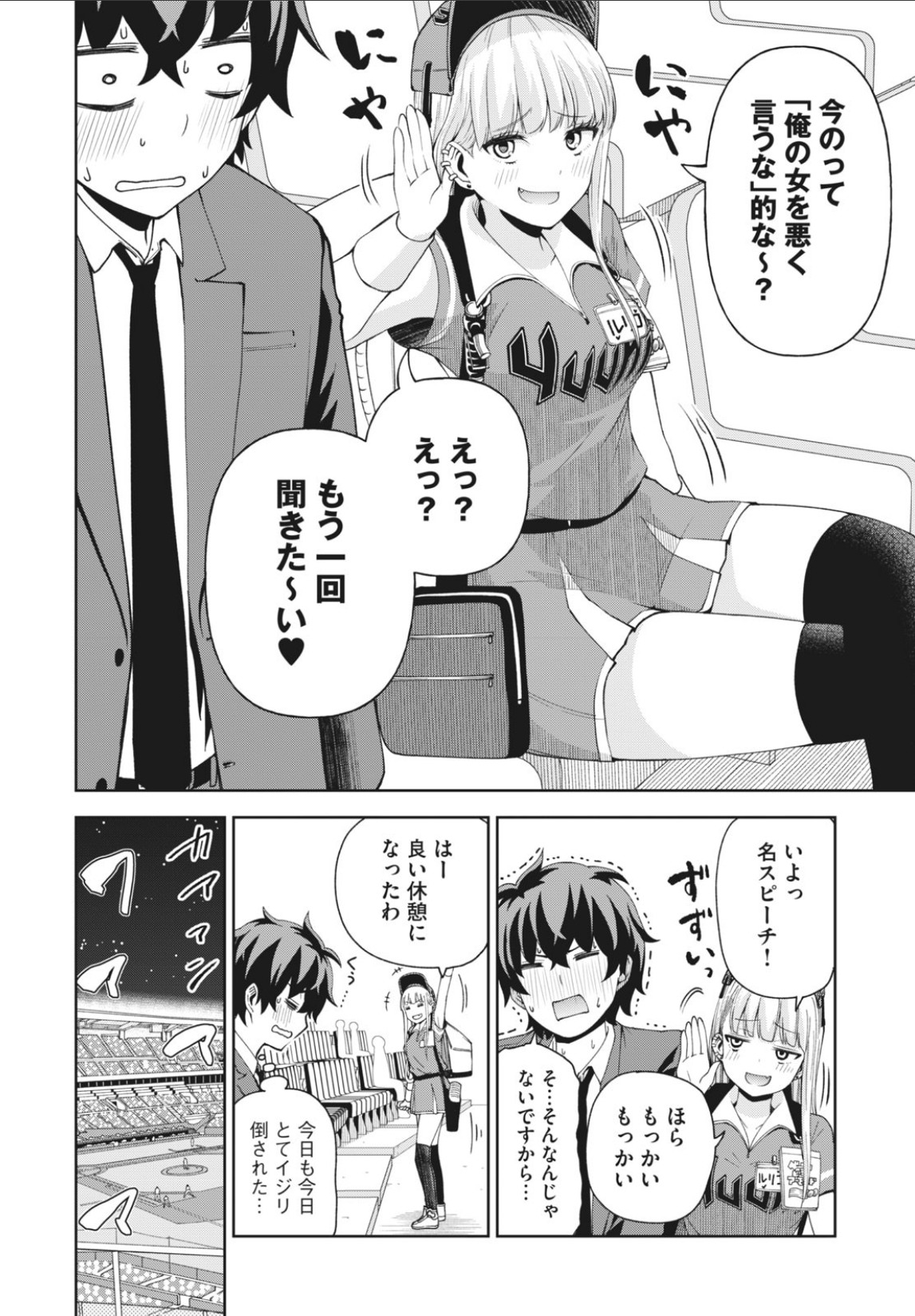 ГГ-аутист сараримен горбатится каждый день и имеет одну радость в жиэни - посещение бейбольного стадиона. Там он встречает няшную продавщицу пива (текила-гёрл?, бир-гёрл?). Она из кожи вон лезет и подкатывает к нему, но он думает что она это делает из вежливости.