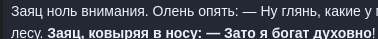 >>2442426 Да тут ситуация проще. Раздел дохлый, анонов в нем мало, почти все они старые и нервные. И тут появляется залетный долбоеб, начинающий нести хуйню. Вот он назвал посредственную несвежую невзлетевшую мангу (3 тома пятилетней давности) откровением и чуть ли не идейным наследником dungeon meshi — и как-то не выдержал, стал в ответ на такую чушь грубить. А он продолжает, называет эту мангу пародией на Джахи, буквально признаваясь в том, что больше ничего другого и не читал — и тут другой анон не выдерживает и ругается. И вот сейчас ты "двачь" с мягкой буквы написал — то ли троллишь так неумело, то ли действительно дурачок наивный, решивший, что его охуительно важное мнение тут всем зайдет.
