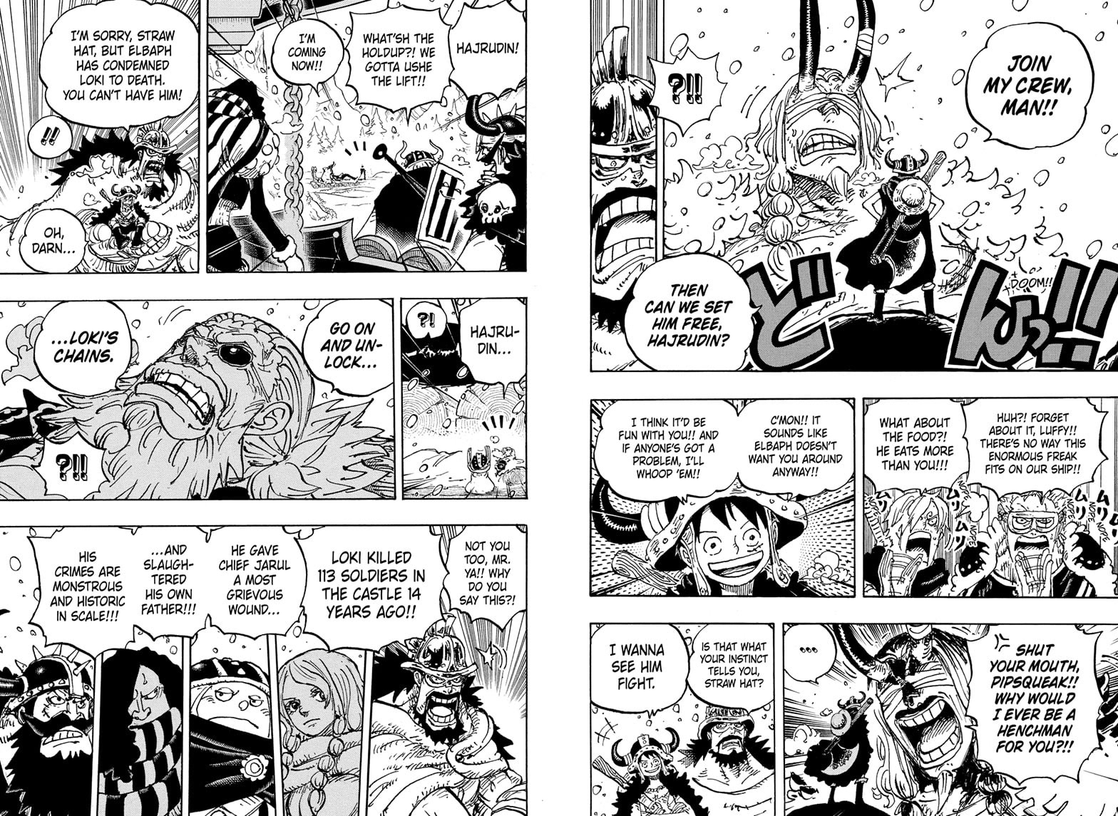 Харальд спас кого-то из союзной Эльбафу страны от агентов Мирового Правительства, и это портит отношения между Эльбафом и МП.