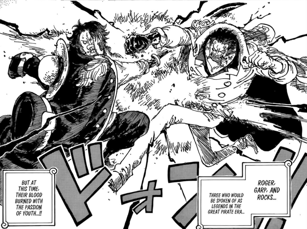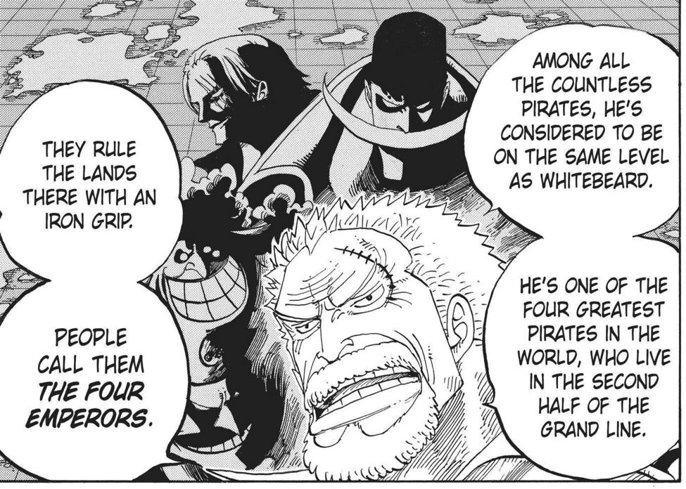 В штабе Морского дозора Гарп попросил Конга разрешить великанам вступить в ряды морпехов, так как им нужна сила великанов. Но Конг сказал, что не может этого сделать, так как это что-то, что может разрешить только Мировое Правительство. Они также говорят о Роксах.