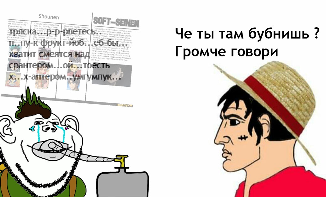 >>2442578 >Скорее чмода тупая сука Ебать попка горит. Вот Ода не продумал все события на 30 лет вперед, а кто-то придумал? Кусок все еще по продуманности наперед ебет остальные сенены. Всем поебать на паверскейлы кроме детишек ебаных, которые неиронично спорят какой выдуманный персонаж сильнее. С этой хуйни ловлю лютый стыд. Ситуация все еще лучше, чем в среднем по палате сененов. Где в Наруто, Пейн буквально невероятная сила, но сейчас он лох, которого дочка Саске без тренировок на кукан посадит. Про Ичиго и его божественные павер ап гены каждую арку и не хочется пиздеть. В Куске хоть тот же Луччи все еще может дать пизды, сражается со старпомом Йонко даже спустя 600 глав. А Адмиралы как быги гигаебырями в начале, так ими и остались. Никаких пришельцев придумывать не пришлось ради повышения планки.
