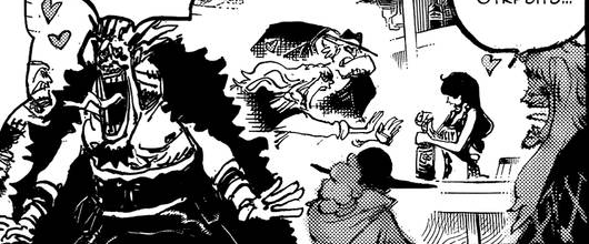- На обложке мы видим имя героя, который сражался с Кайдо, а затем исчез. Имя на надгробии - Козуки Мория. - 40 лет назад Роджер отправился на остров Улей и встретил там Рокса и его команду. Но в баре Шакки драки были запрещены, так что обе стороны сдержали свой пыл. - Рокс влюбился в другую женщину и разлюбил Шакки. У Рокса и этой женщины родился сын, которым, очевидно, был Тич (Чёрная Борода). - Гарольд принял предложение Горосеев и отправился сражаться с Роксом. Они бились яростно, их схватка порождала мощные выбросы Воли, но в итоге всё закончилось ничьей, так как они оба отправили друг друга в нокаут. В тот день их дружбе пришёл конец. - 39 лет назад Гарлинг обнаружил в Долине Богов нечто интригующее, что наверняка понравится Иму-сама. - В конце главы мы видим рыжеволосую женщину с двумя младенцами. Хотя лица женщины не видно, мы видим младенцев: это Шанкс и Шемрок.