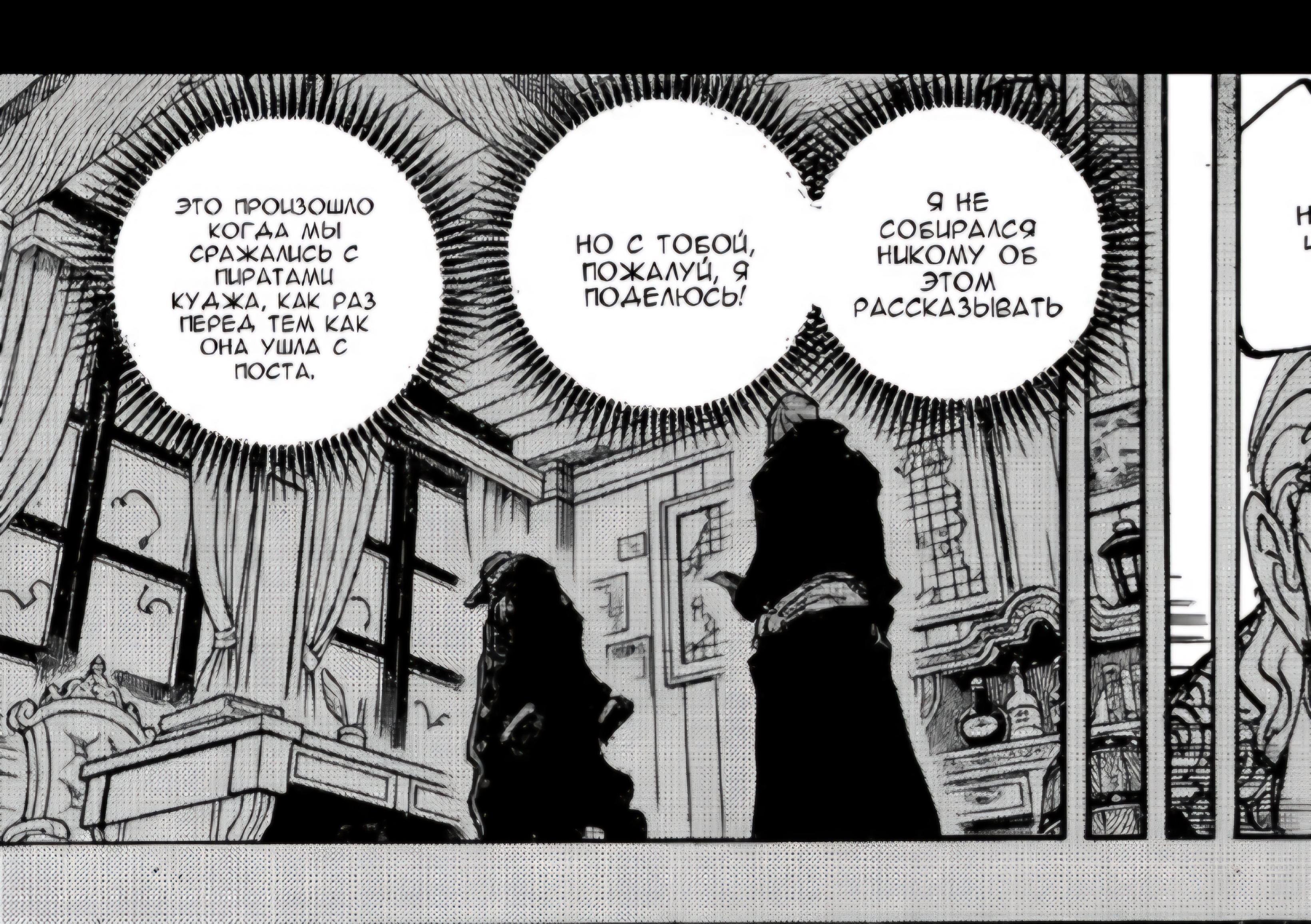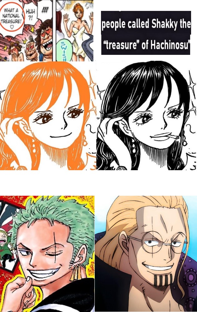 Вы посмотрите как этот специалист в команде по открыванию баклах, подорвался помогать. Это его сокровища всё ищет Баги? Судя по всему эти сокровища окажутся - панцу Шаки. Помните ещё Брук спрашивал про панцу Шаки и она почти ответила. Он сам того не зная был близок к разгадке того, что такое Ван Пис.