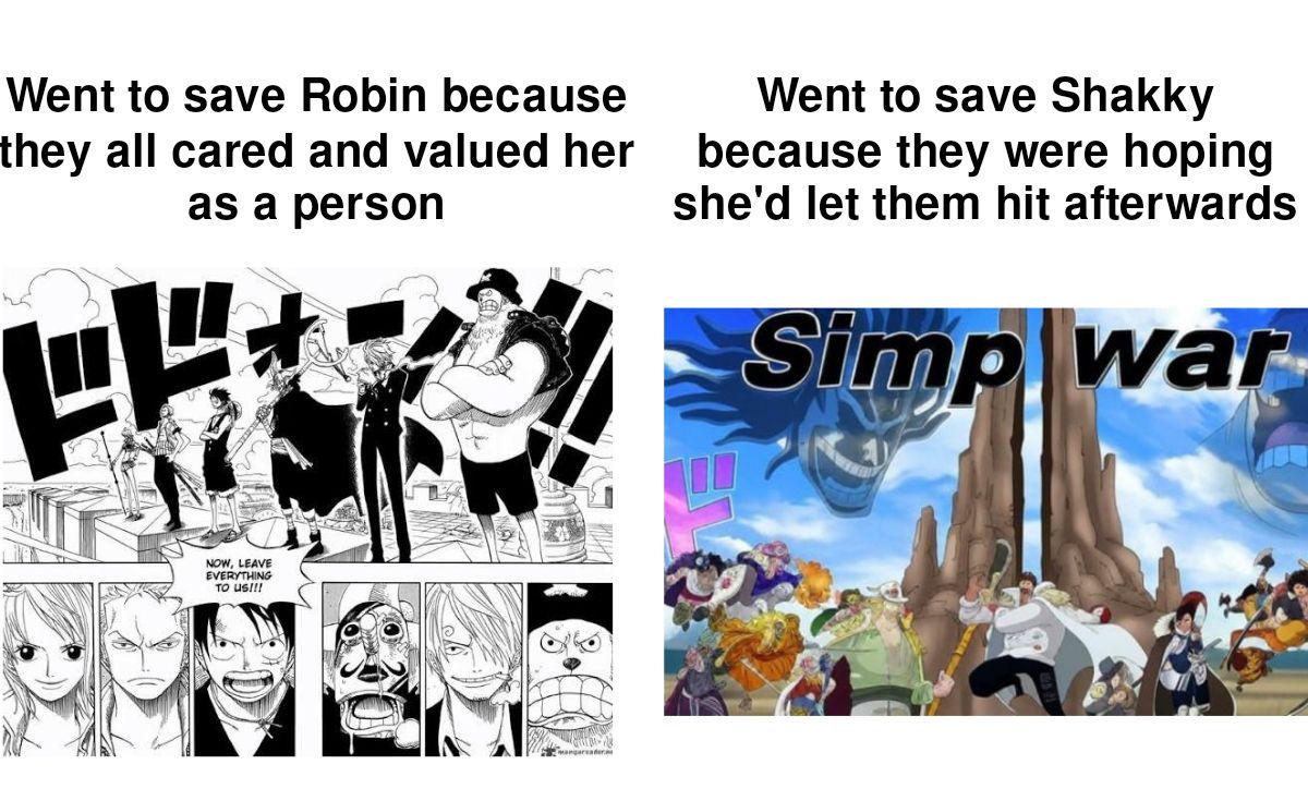 Ну жить под одной крышей и не обрюхатить за два года Перону это действительно сильно, ну и на корабле мугивар тоже понятно дело секса нет хотя фрукт Нико Робин как будто под это создан, надеюсь хоть Нами с ней веселится иногда
