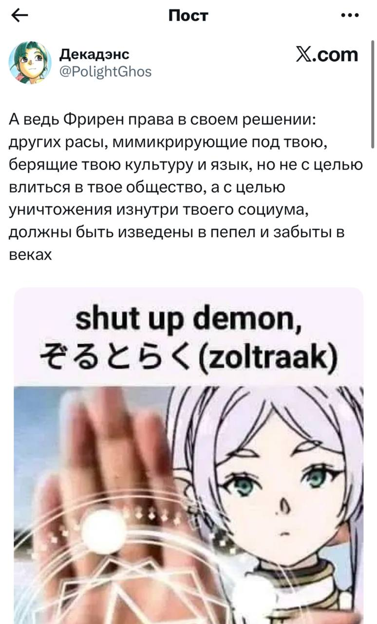 >>2444348 >Ну а что делать если молодняк требует таких персонажей? А они сейчас с тобой в одной комнате? С чего, что ты и Ода решили, что кому-то нужно именно такие персонажи? >>2444351 >>2444359 Охуеть, т.е., пускающий слюни на очередного нами клона симп это охренеть какой глубокий и многогранный персонаж? Я вас понял. Хотя я надеюсь, что вы так троллите. >за крутыми героями и злодеями на сухом пафосе пиздуй блич читать Кстати, я его не читал, стоит ли? Годная манга? >>2444362 Похоже на правду. >>2444365 У меня бы не было к этому претензий, если бы Ода не начал в открытую надрачивать на очередного нами клона, а всех остальных персов заставлять бегать за ней как собачки. >>2444374 Суть в том, что раньше такой хуйни не было.